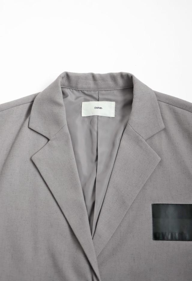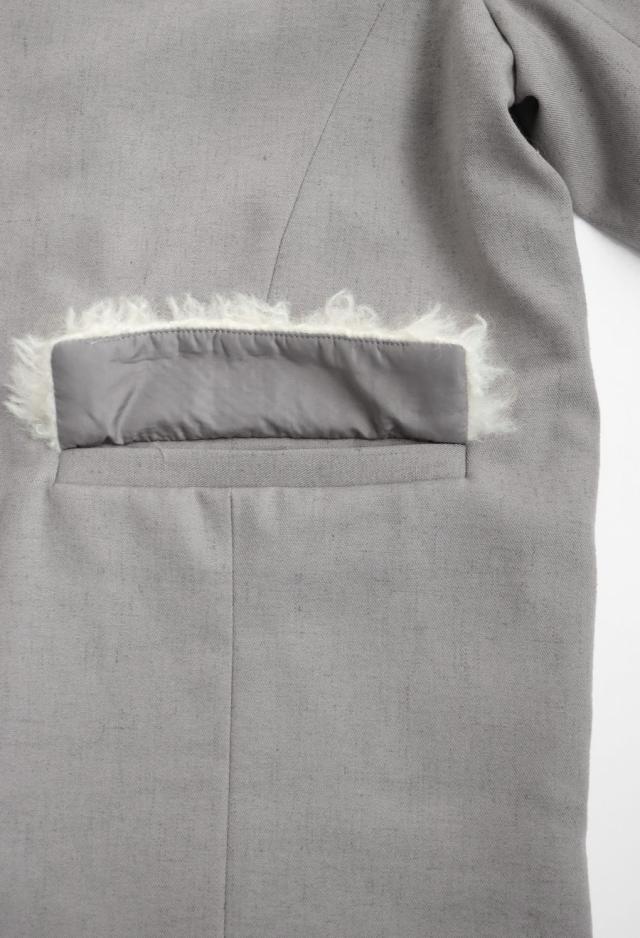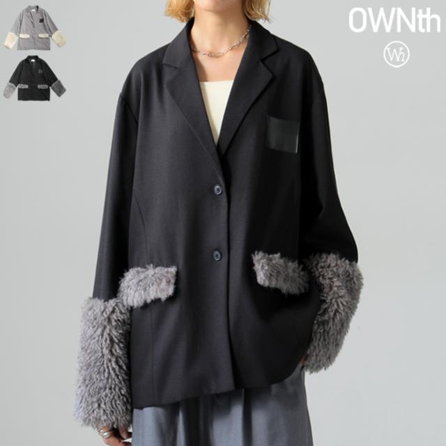 owt-0109 アウター ジャケット コート 長袖 ファー切替 麻混 ロングスリーブ ロゴパッチ パネルライン シングルボタン ポケット付き セットアップ ファー テーラード