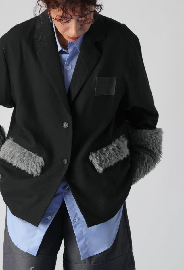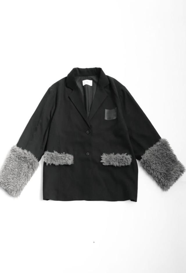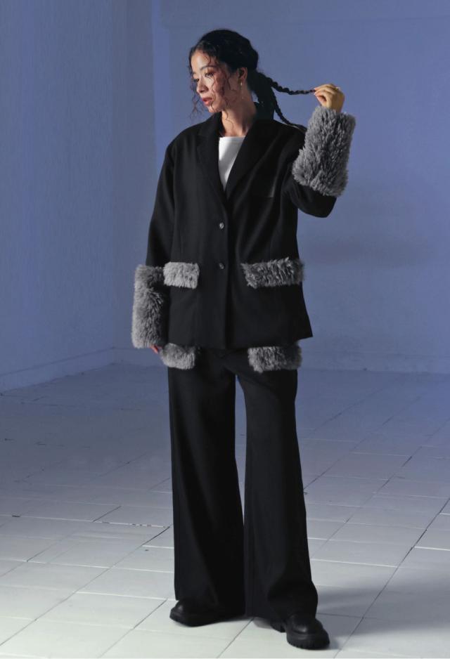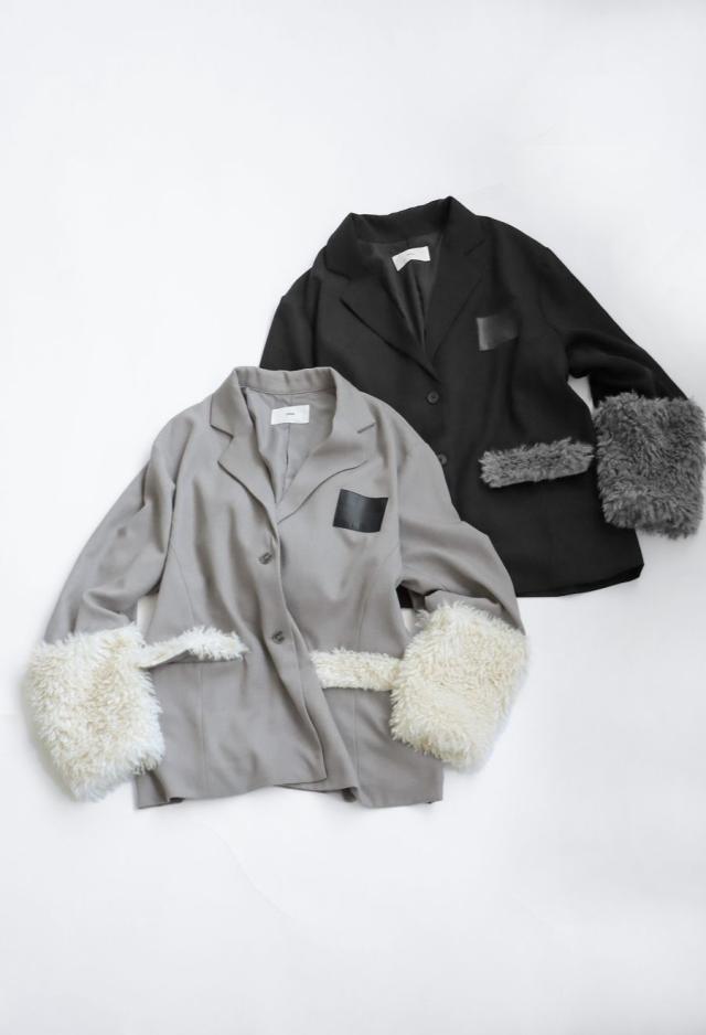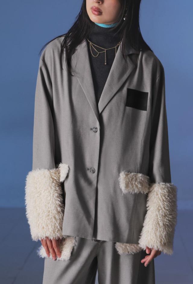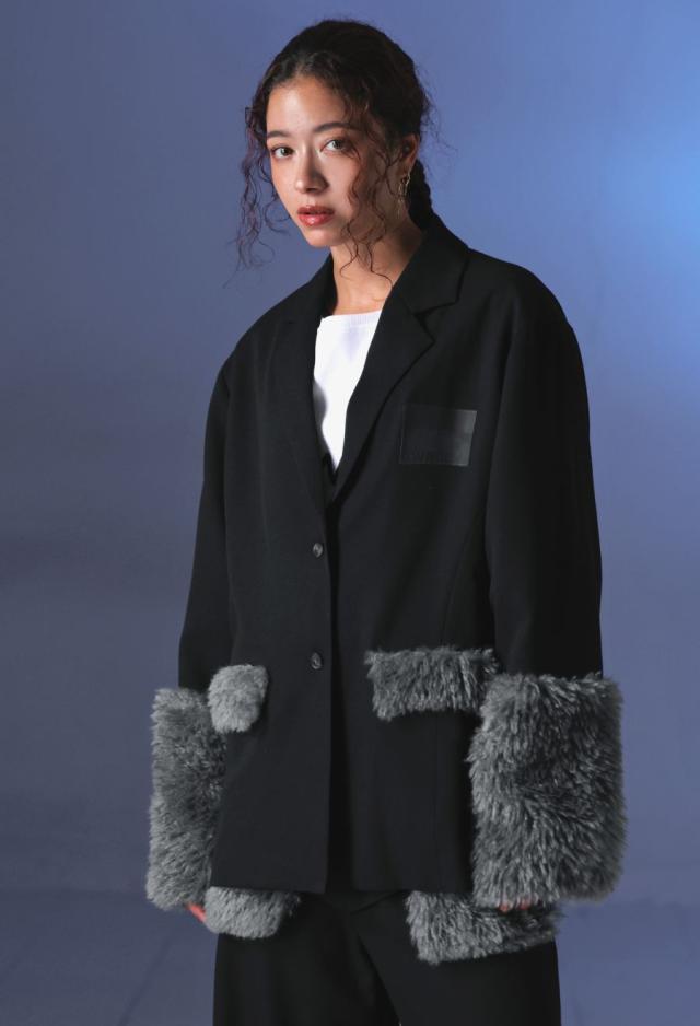 きちんと感のあるテーラードカラーに、存在感たっぷりのファー切替を施した、ドッキングジャケットです。
