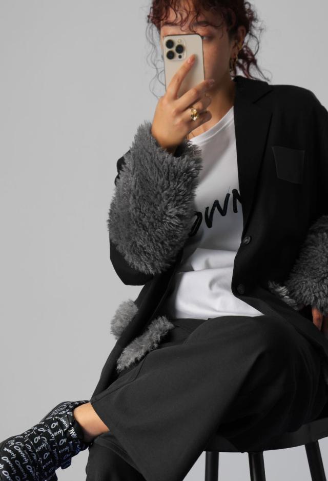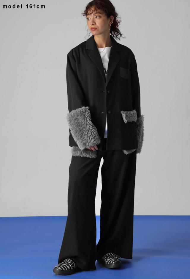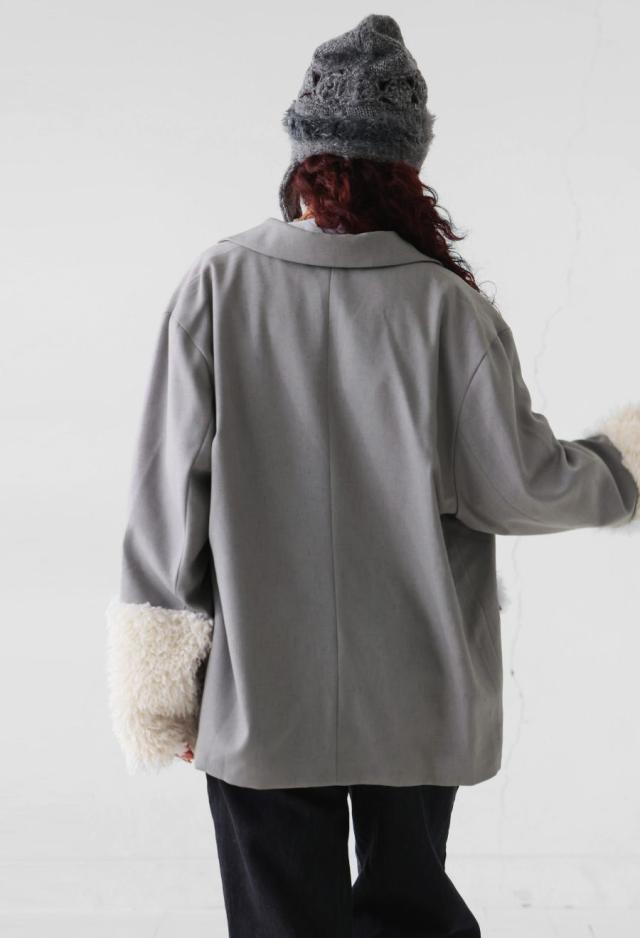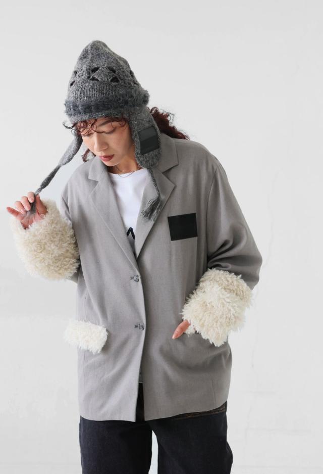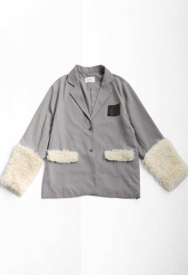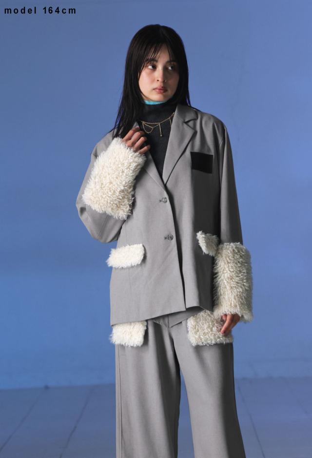 きちんと感のあるテーラードカラーに、存在感たっぷりのファー切替を施した、ドッキングジャケットです。