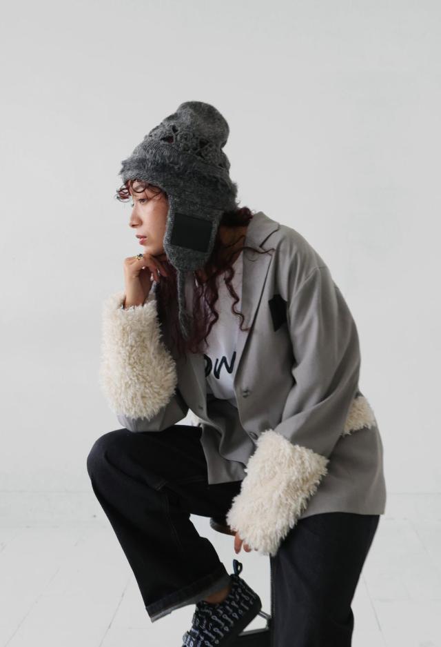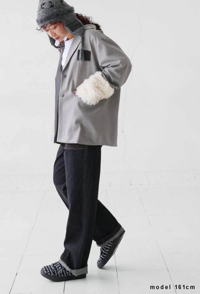 | 素材 | 表地・本体:ポリエステル93% 麻5% ポリウレタン2% 裏地:ポリエステル100% ファー部分:ポリエステル100% パッチ部分:合成皮革 |