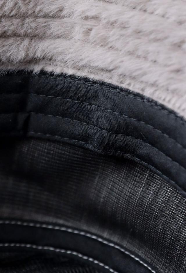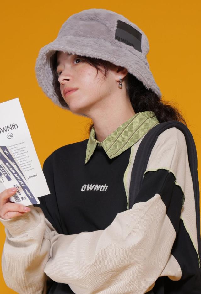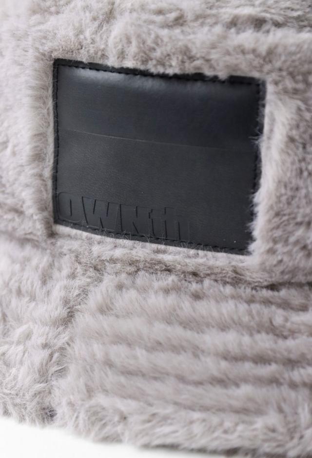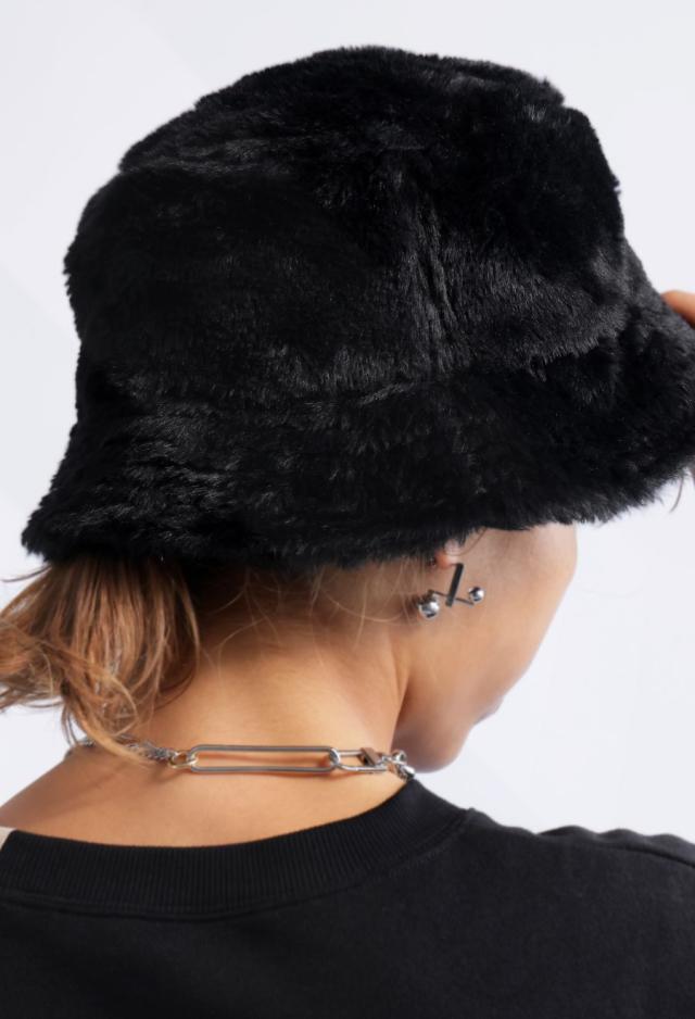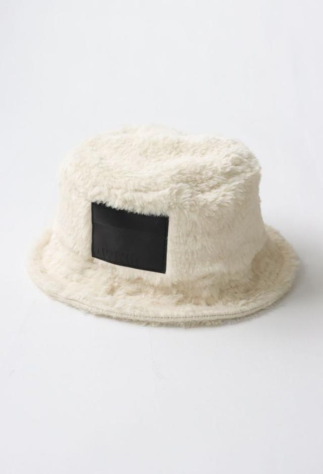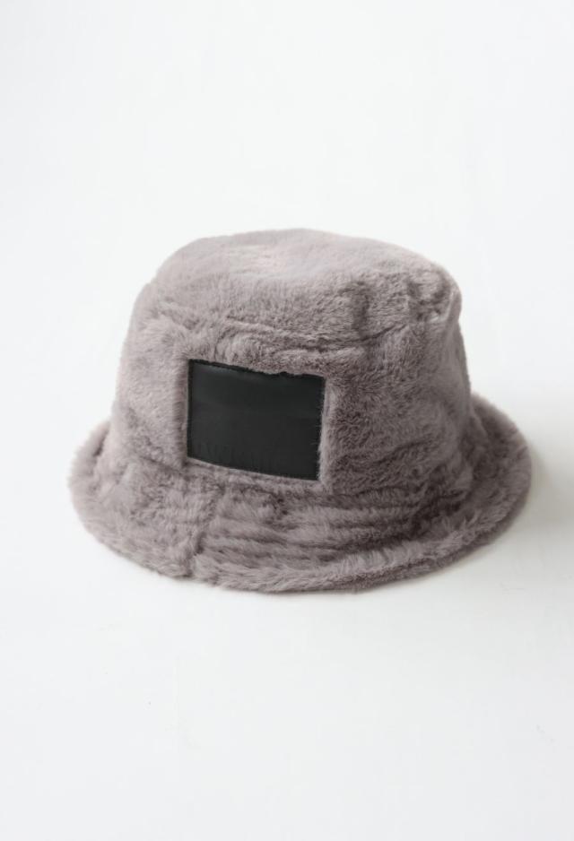 owt-0041 帽子 ハット バケットハット ファーハット フェイクファー ロゴ モコモコ ファー レザーパッチ 防寒 おしゃれ カジュアル ストリート プレゼント 無地 コーデ 小物