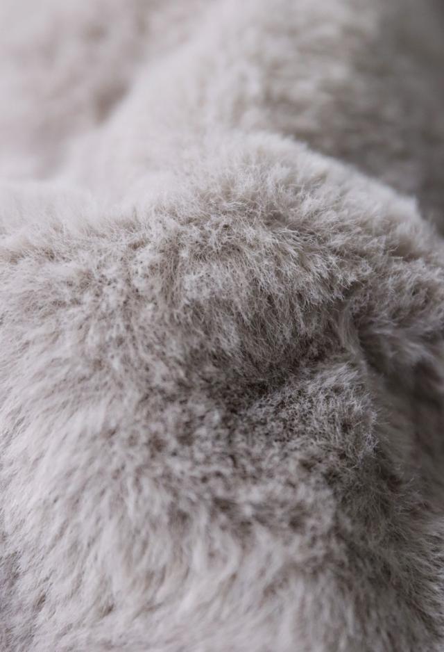 毛足の長いフェイクファー素材を使用し、ふんわりとした肌ざわりで暖かく、コーディネートに季節感を添えてくれます。