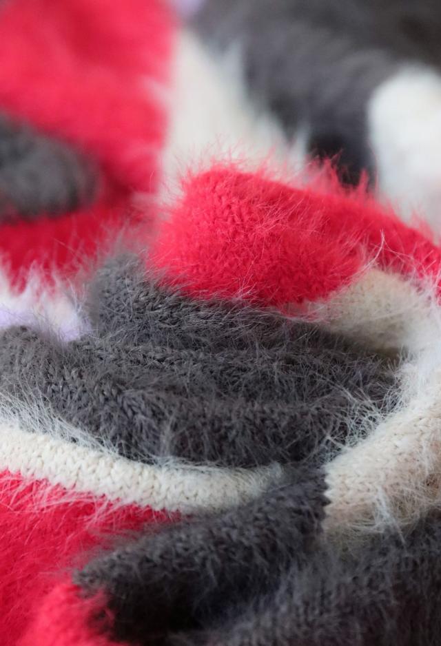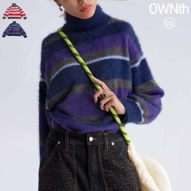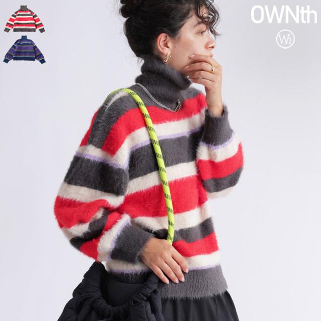 owt-0037 ニット シャギーニット トップス タートルネック ハイネック ボーダー 柄 シャギー あたたかい ふわふわ おしゃれ ポップカラー カラフル レイヤード カジュアル