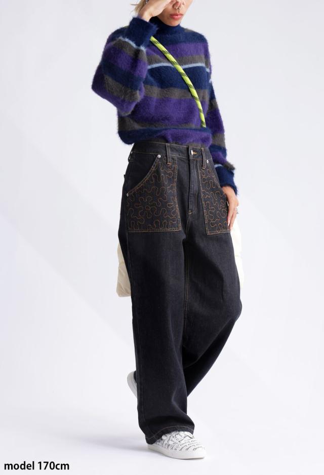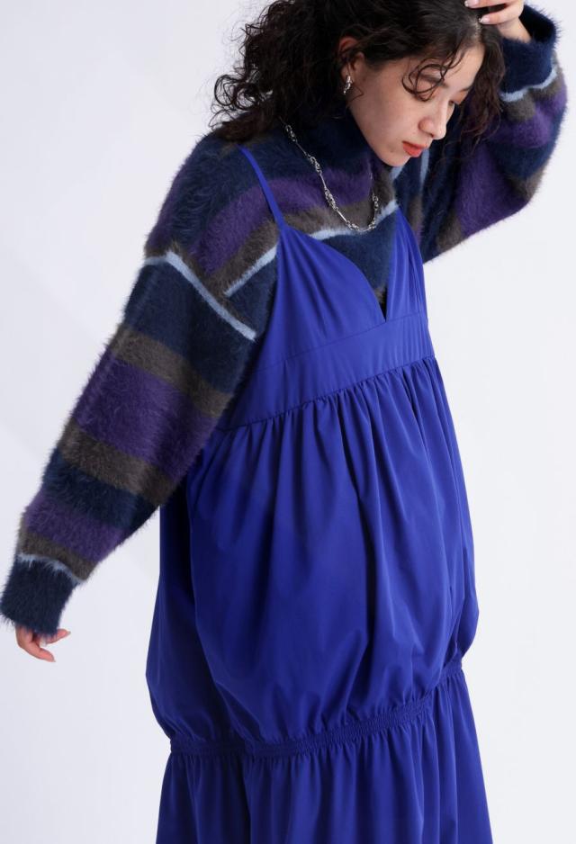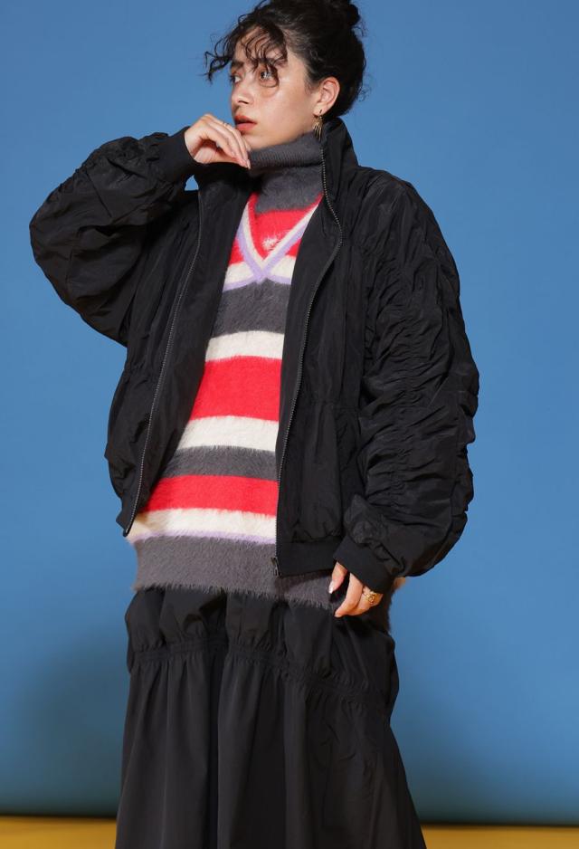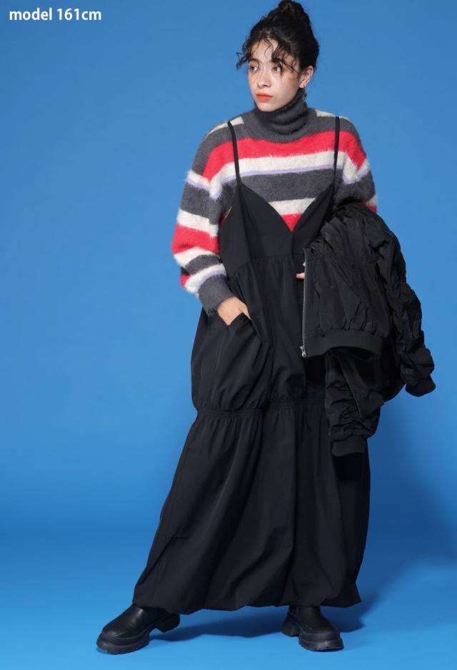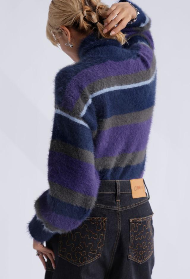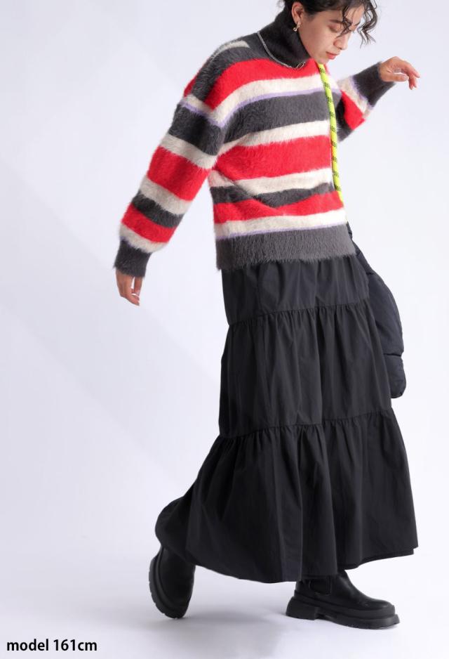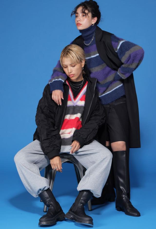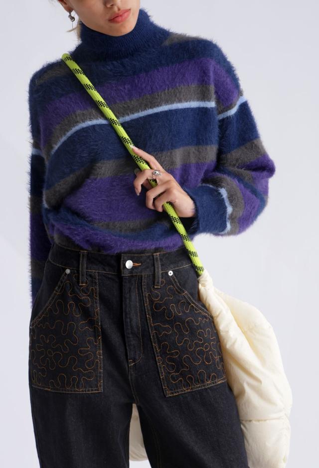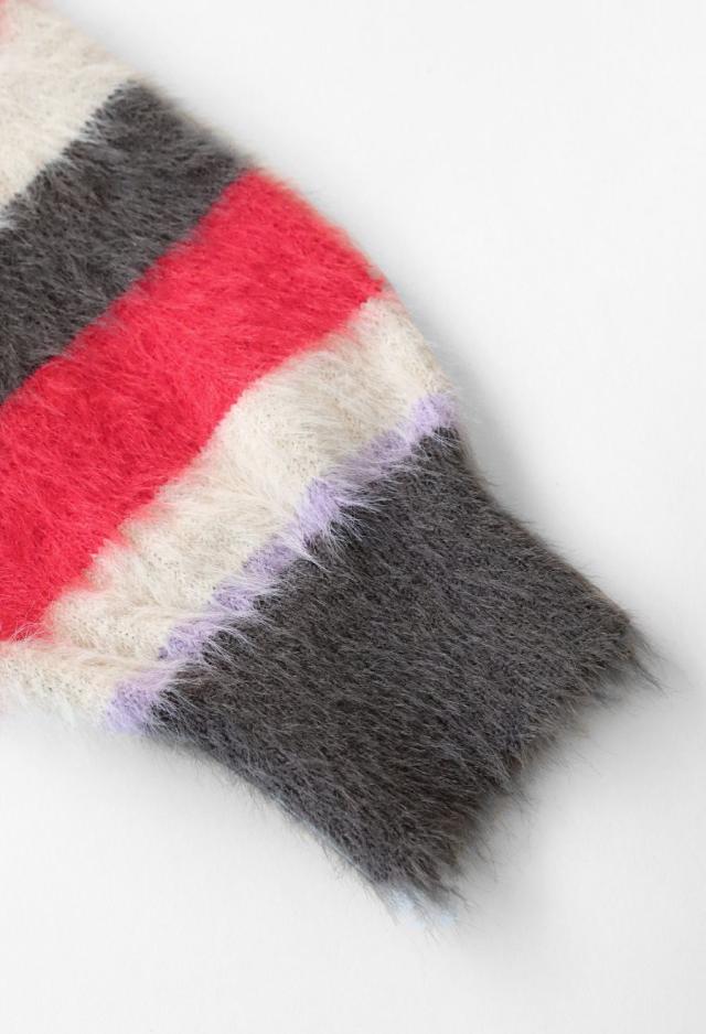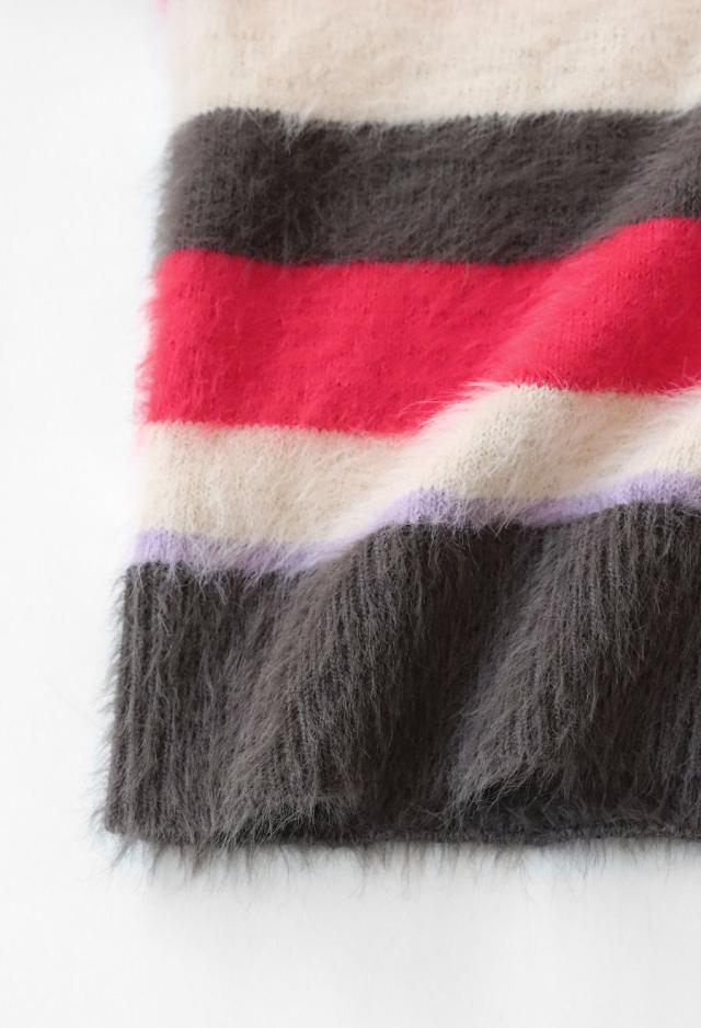毛足のある表情豊かなシャギーニットで仕立てた、遊び心溢れるボーダータートルネックニットトップスです。
