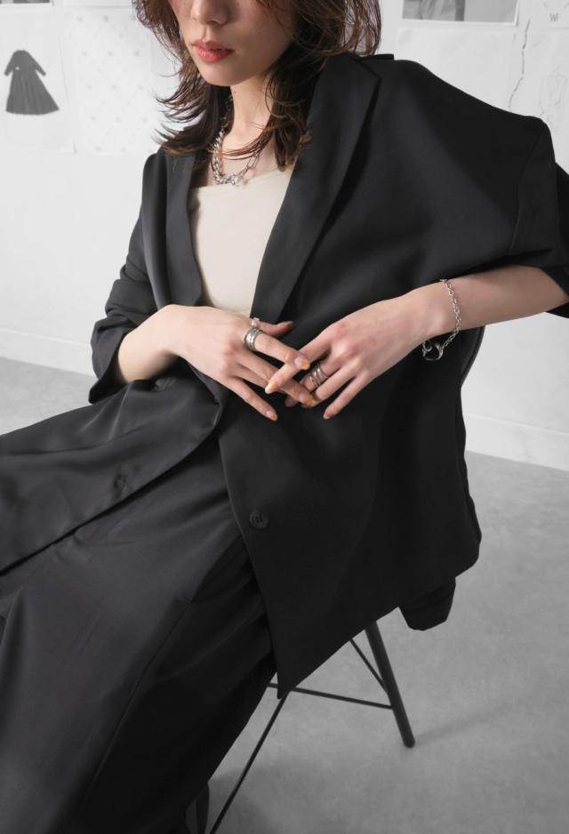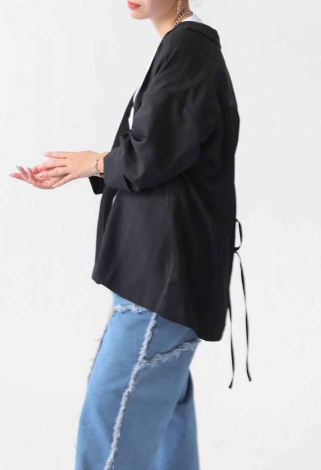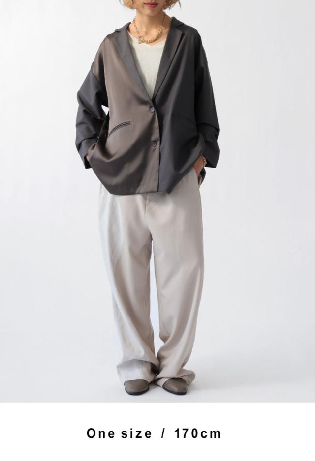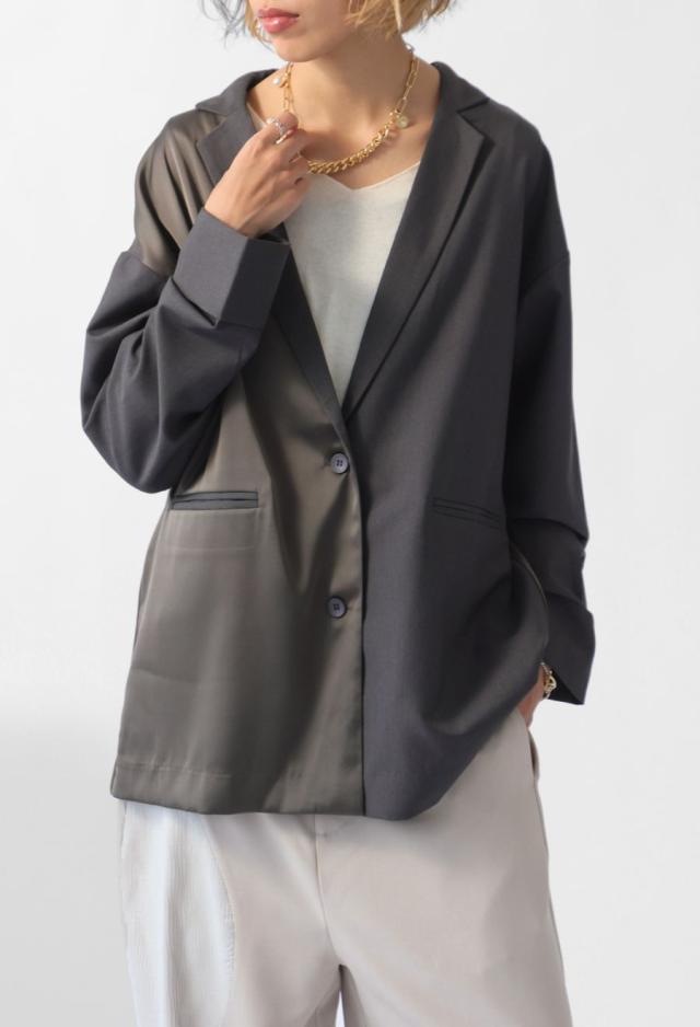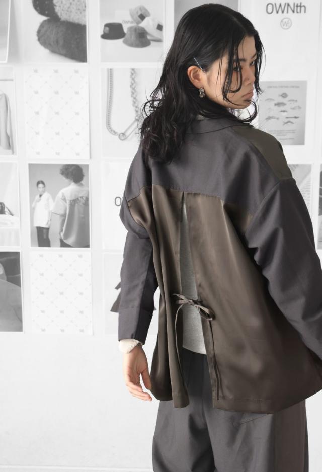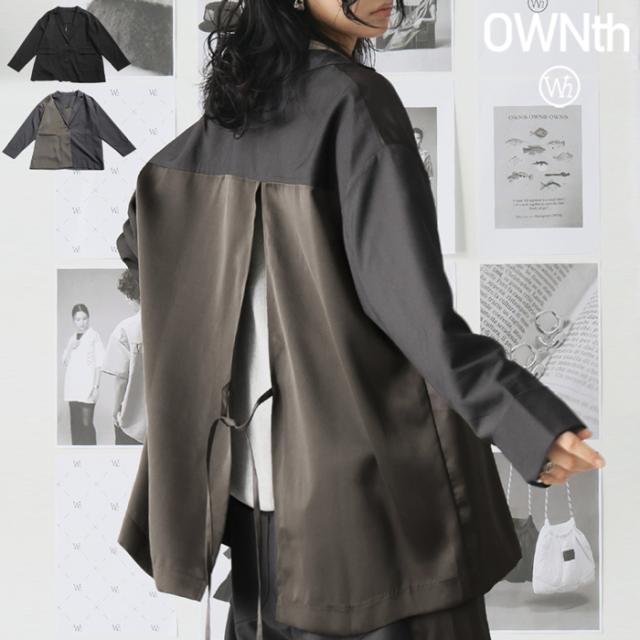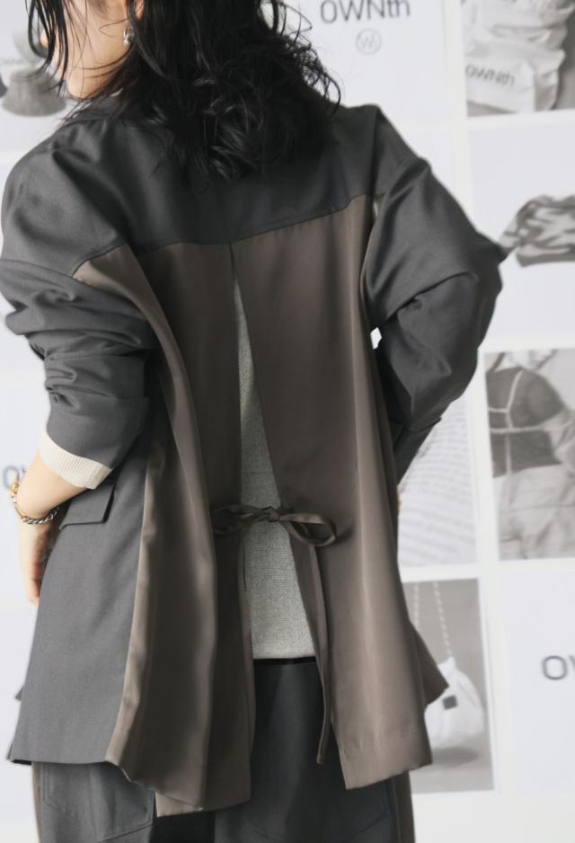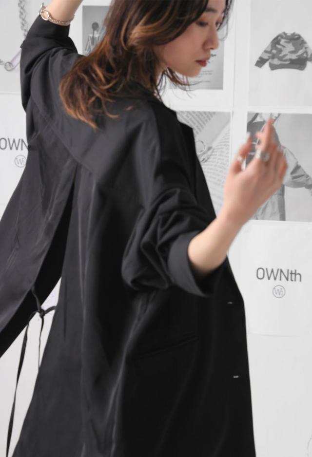 owt-5031 ジャケット バックスリット 切替 リボン 長袖 テーラードジャケット テーラード オーバーサイズ サテン セットアップ 高級感 モード シングル ゆったり バイカラー 無地