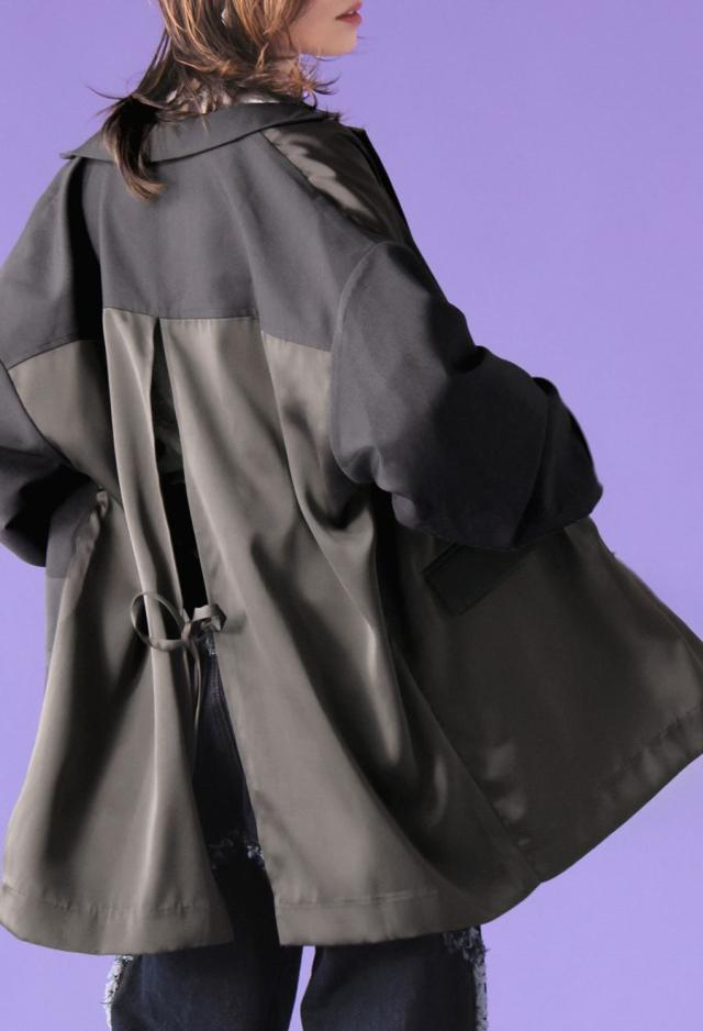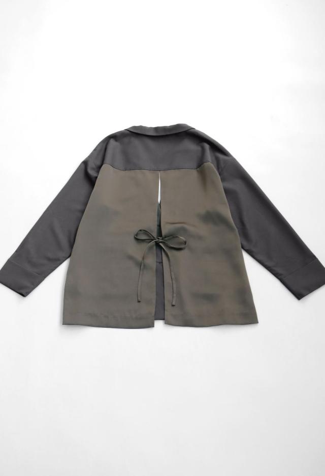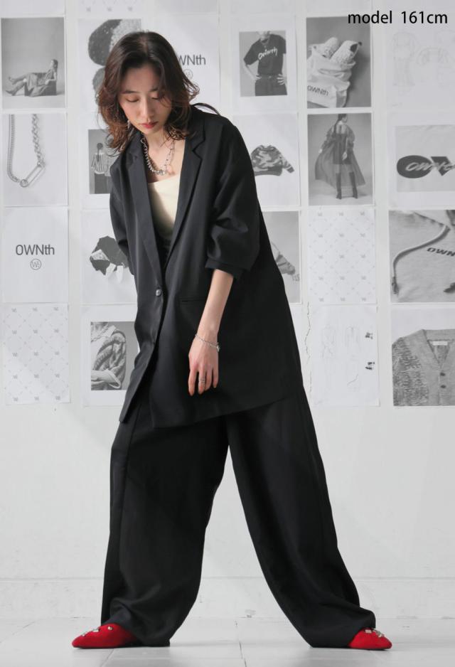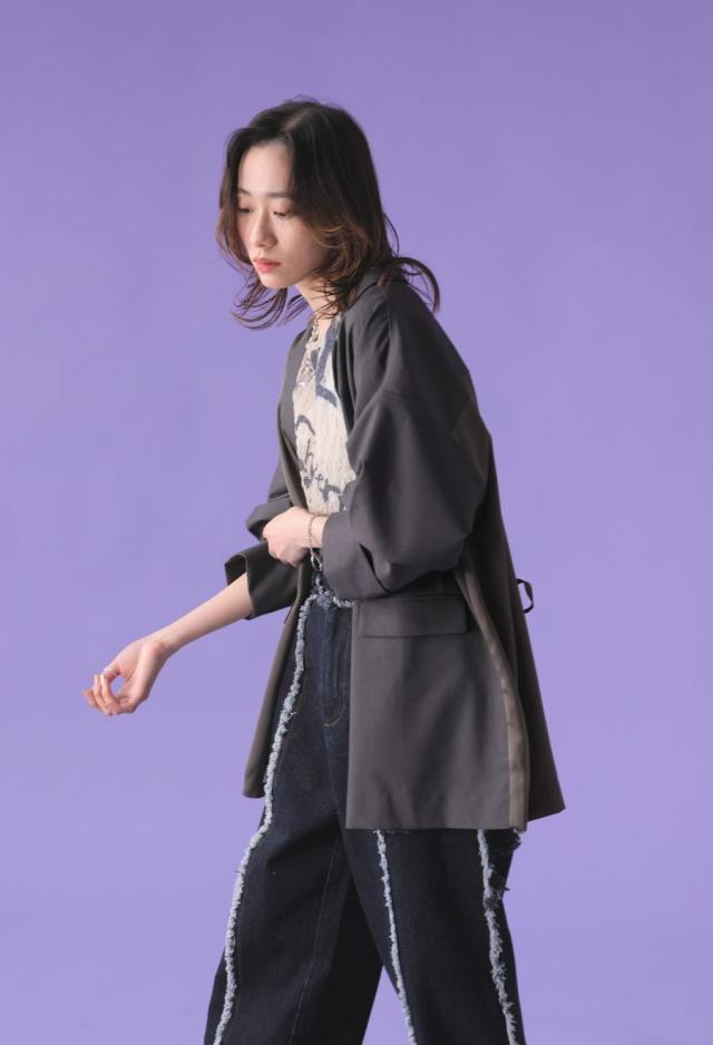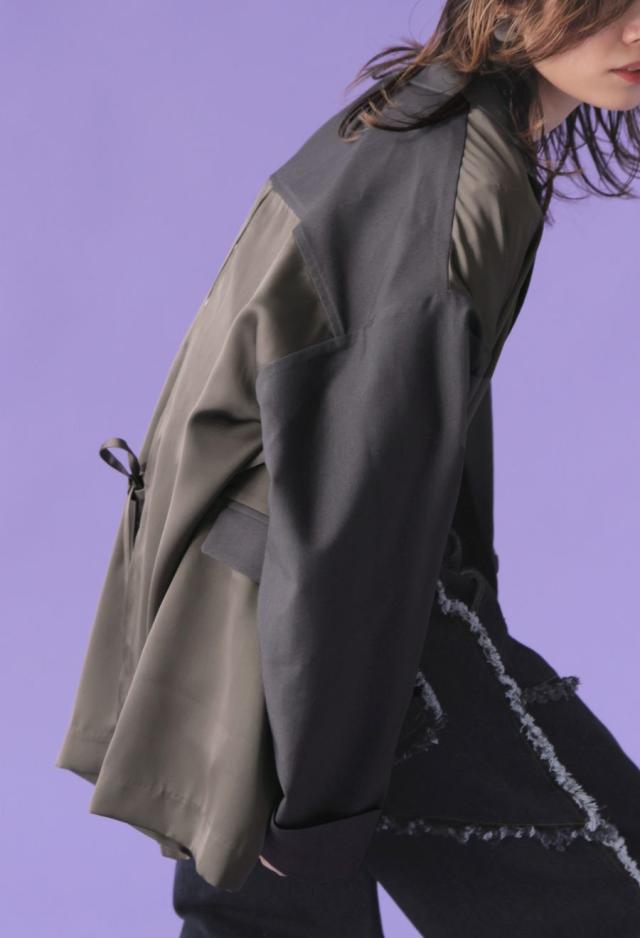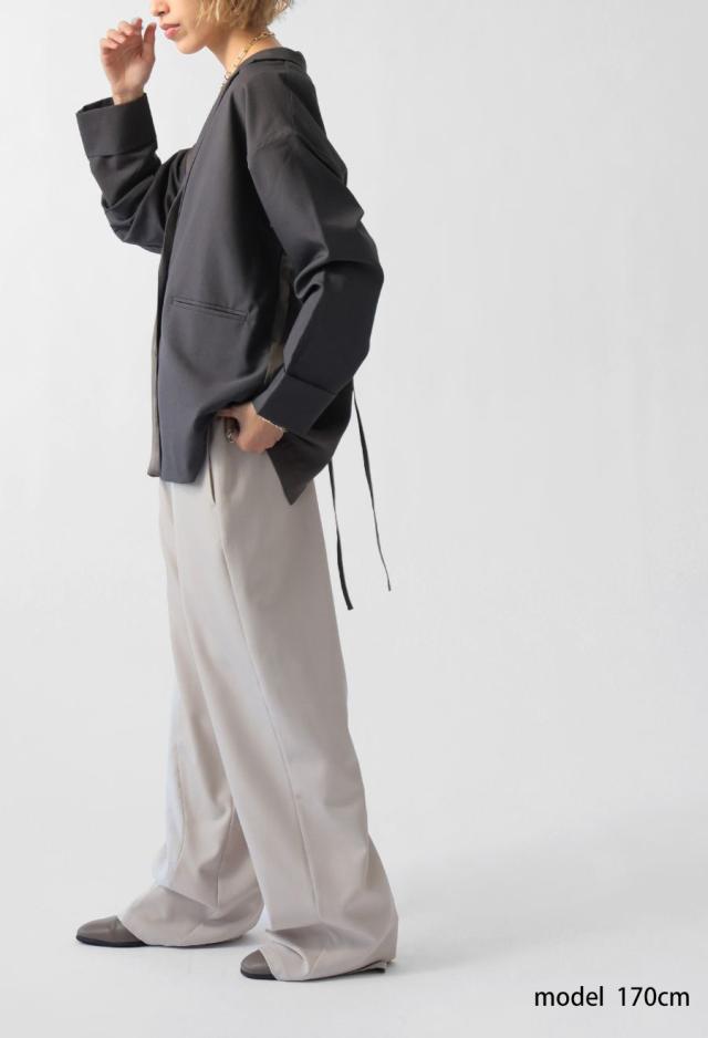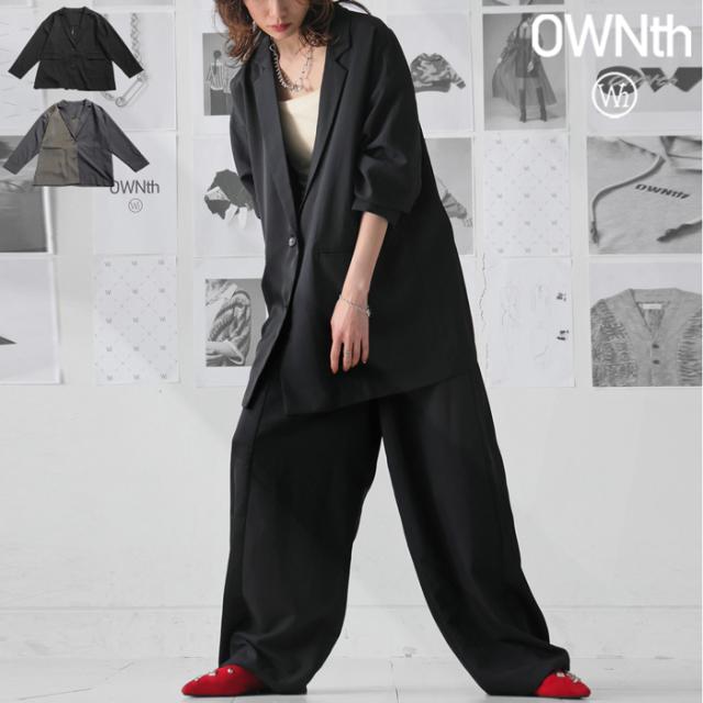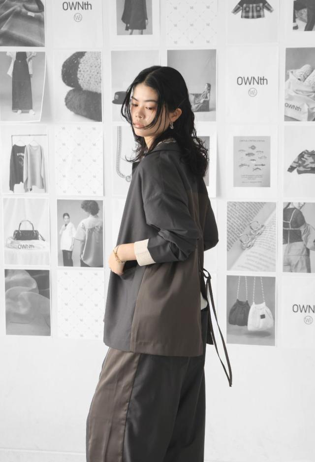 owt-5031 ジャケット バックスリット 切替 リボン 長袖 テーラードジャケット テーラード オーバーサイズ サテン セットアップ 高級感 モード シングル ゆったり バイカラー 無地