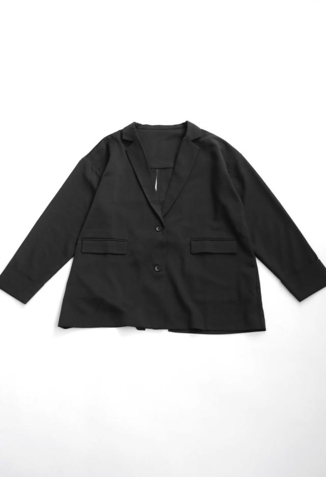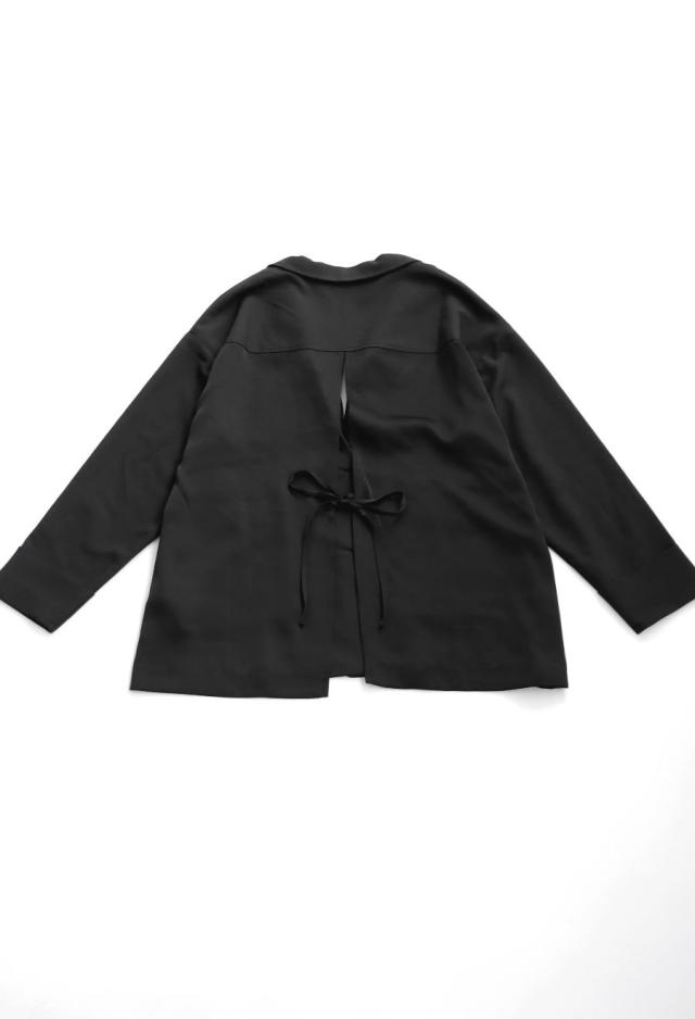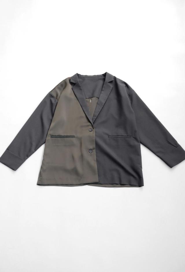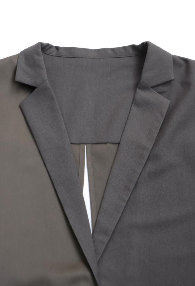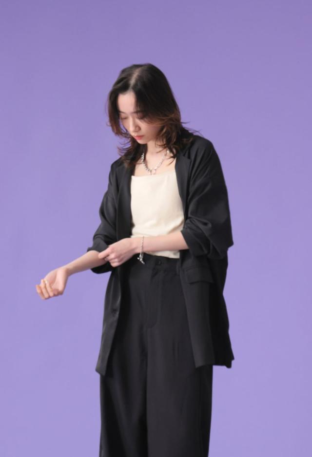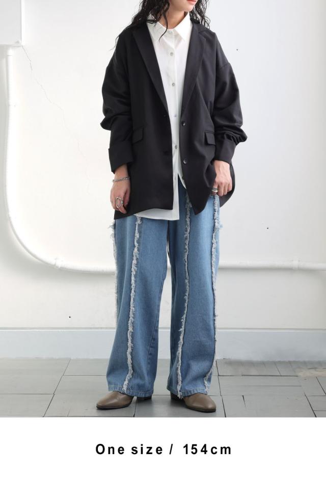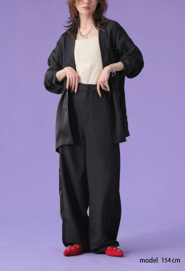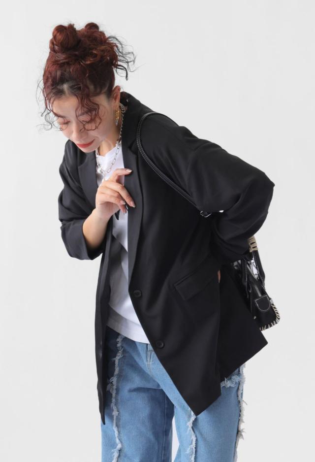 owt-5031 ジャケット バックスリット 切替 リボン 長袖 テーラードジャケット テーラード オーバーサイズ サテン セットアップ 高級感 モード シングル ゆったり バイカラー 無地