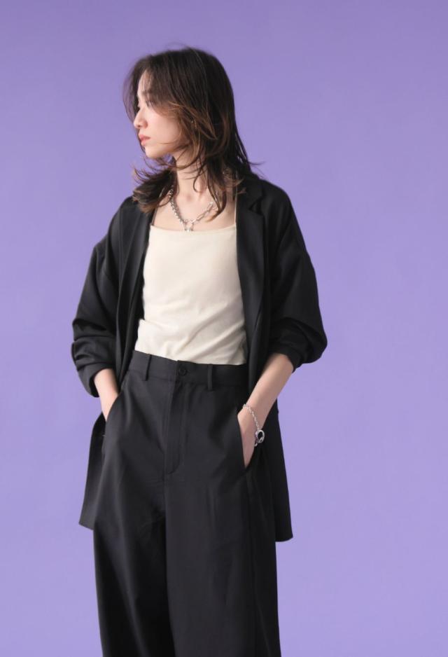 メンズライクなテーラードにフェミニンなリボンを組み合わせ、モードなエッセンスを効かせた絶妙なバランスが魅力です。