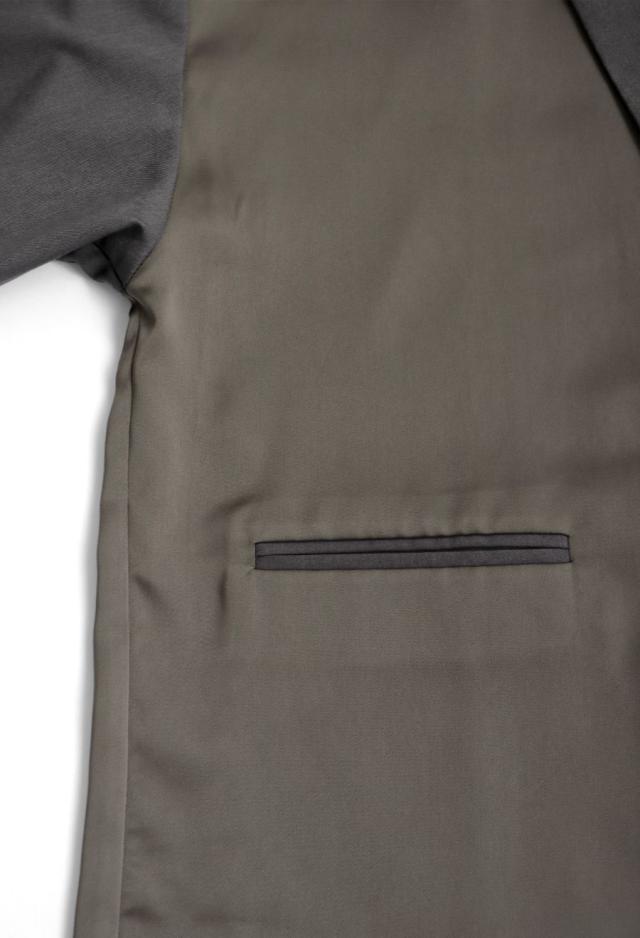 カジュアルでありながら洗練された高級感を放つ、バックデザイン切替ジャケット。