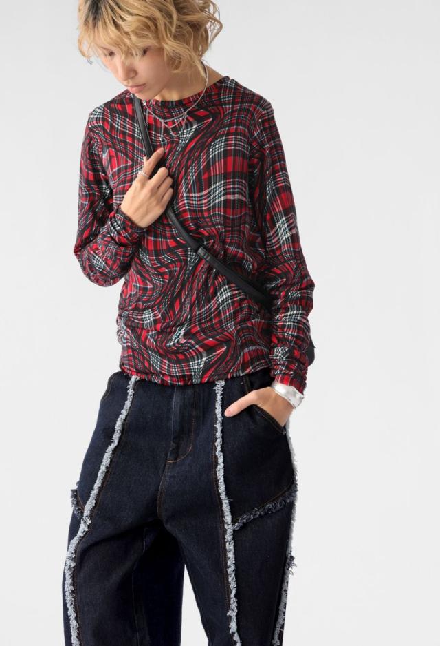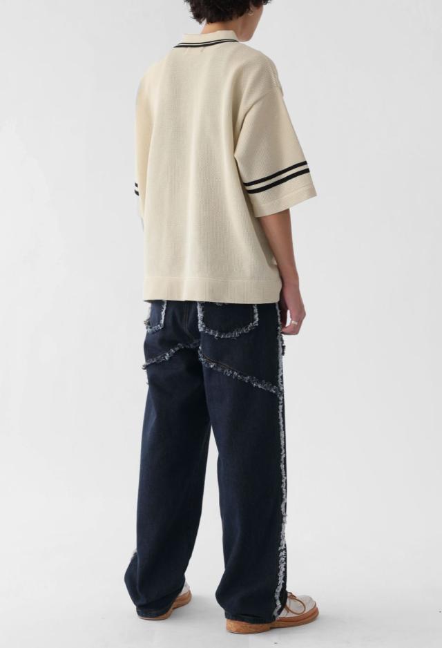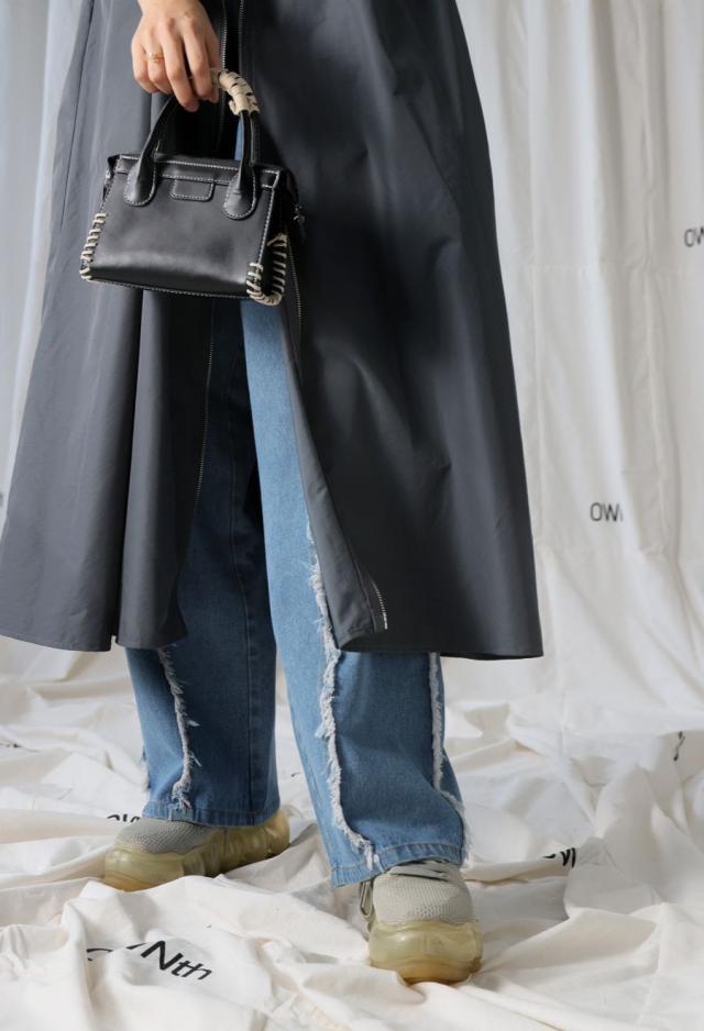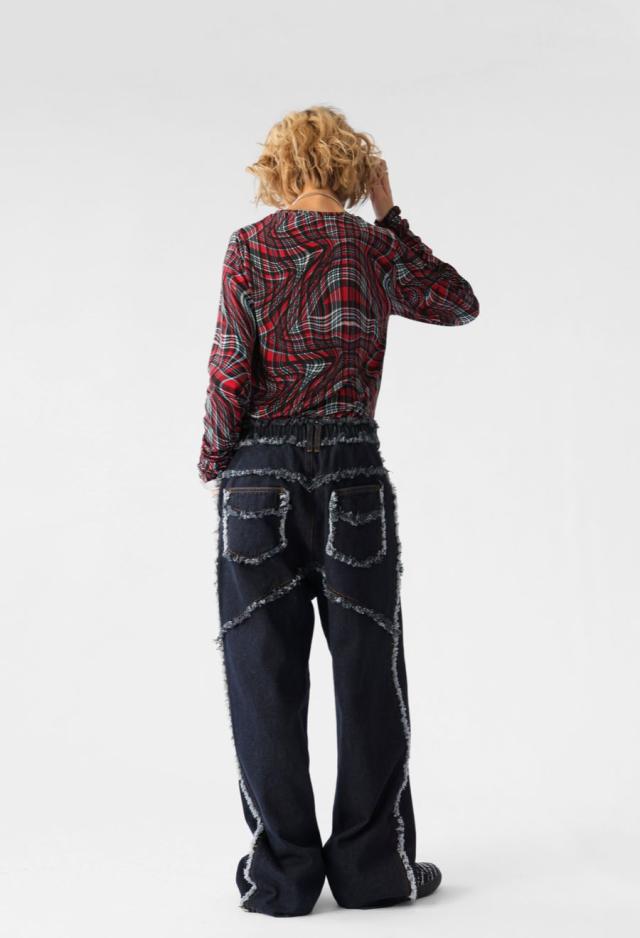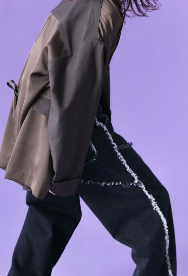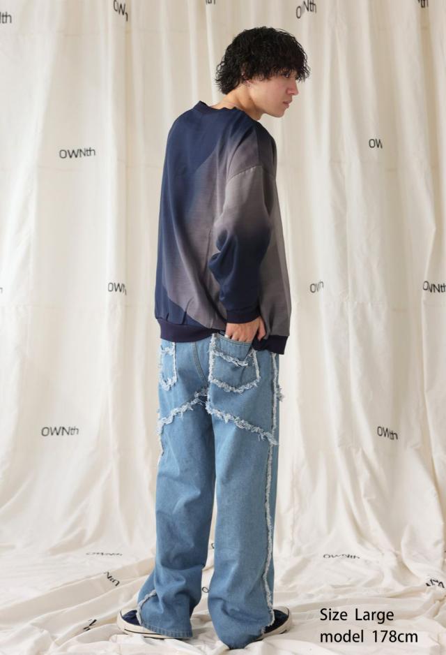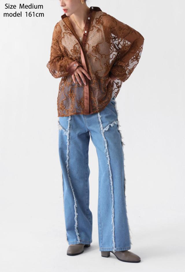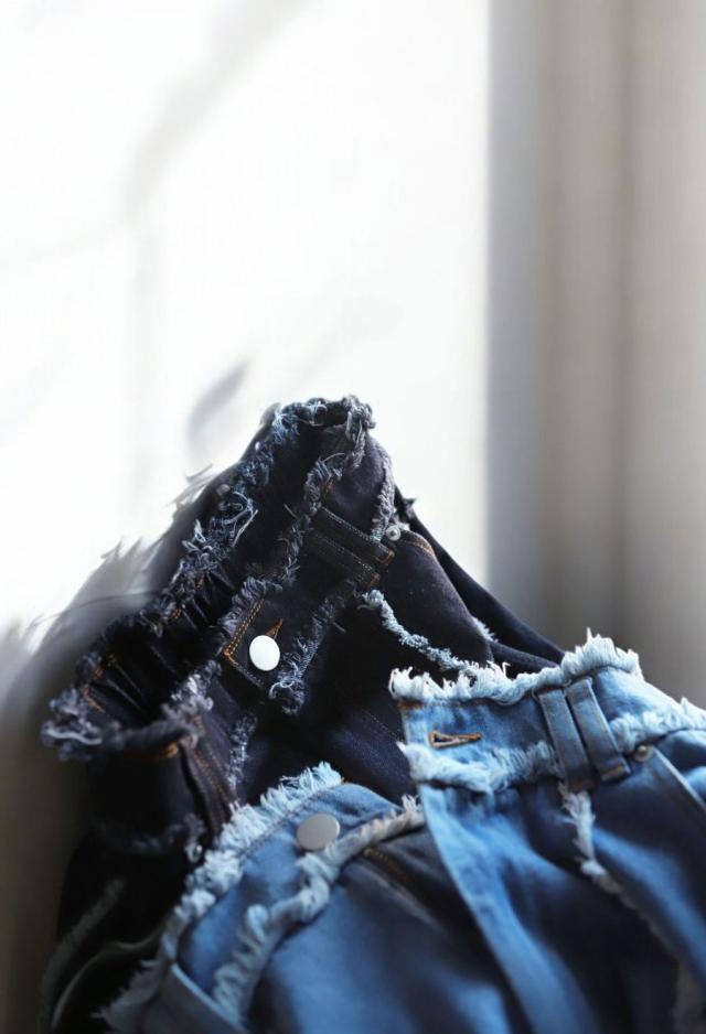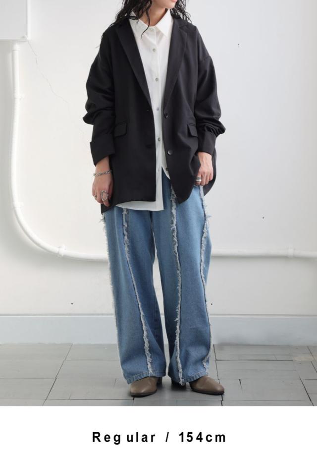エッジの効いたフリンジラインが目を惹くデニムパンツです。
