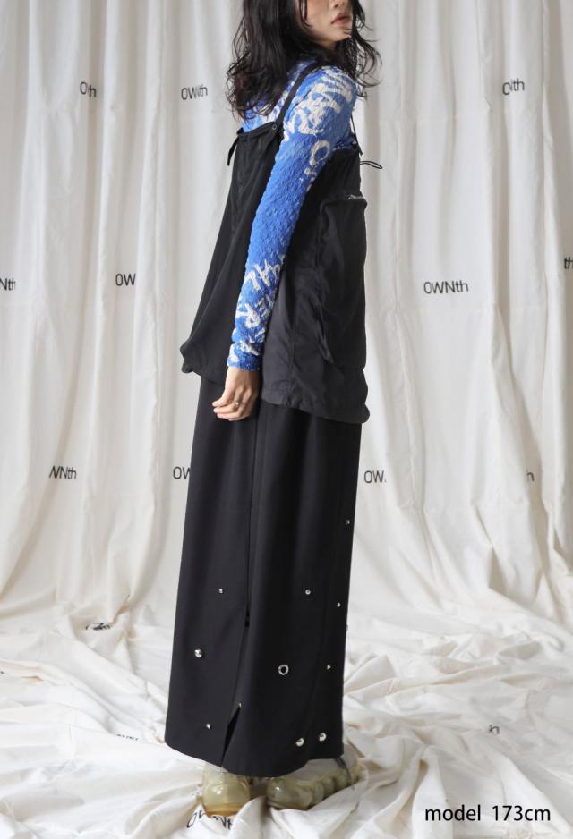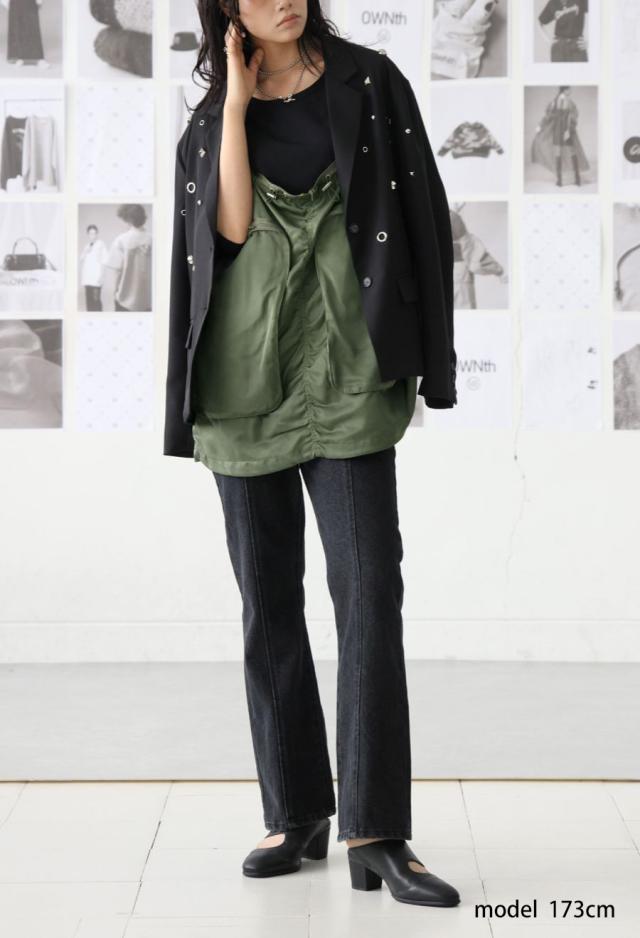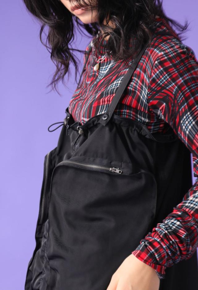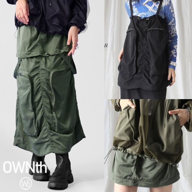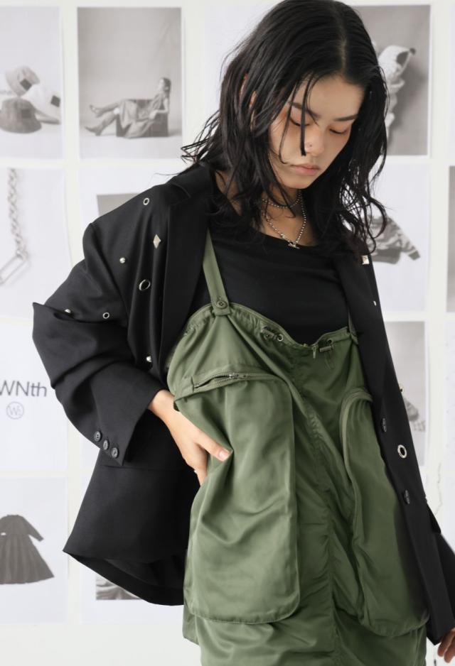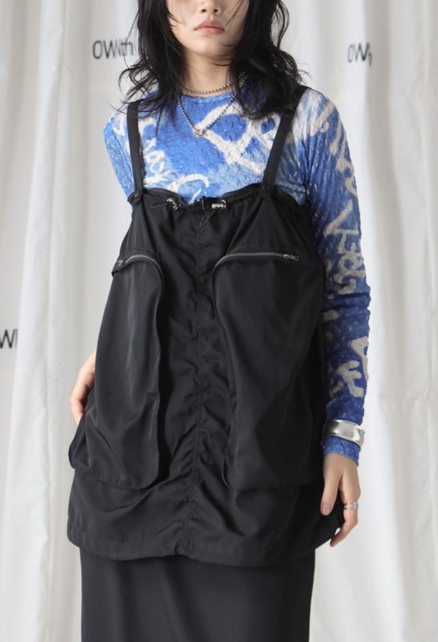 owt-0116 ロング ミニ トップス キャミソール ビスチェ 変形 アレンジ モード 上品 ジップ ポケット カーゴ 体型カバー ストラップ パッチ 大人カジュアル 3通り レイヤード