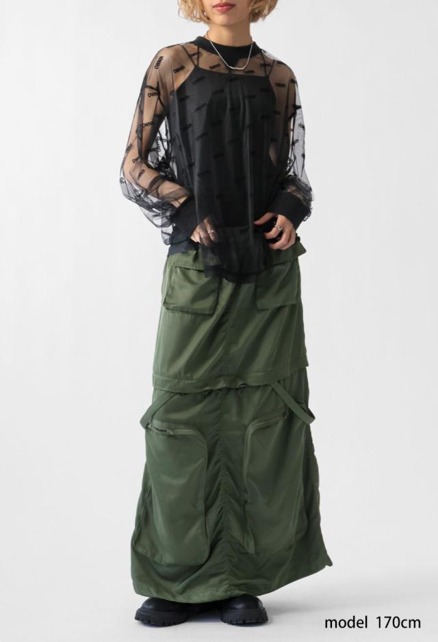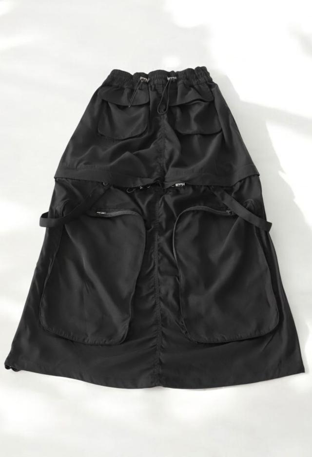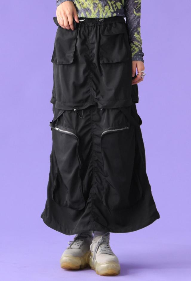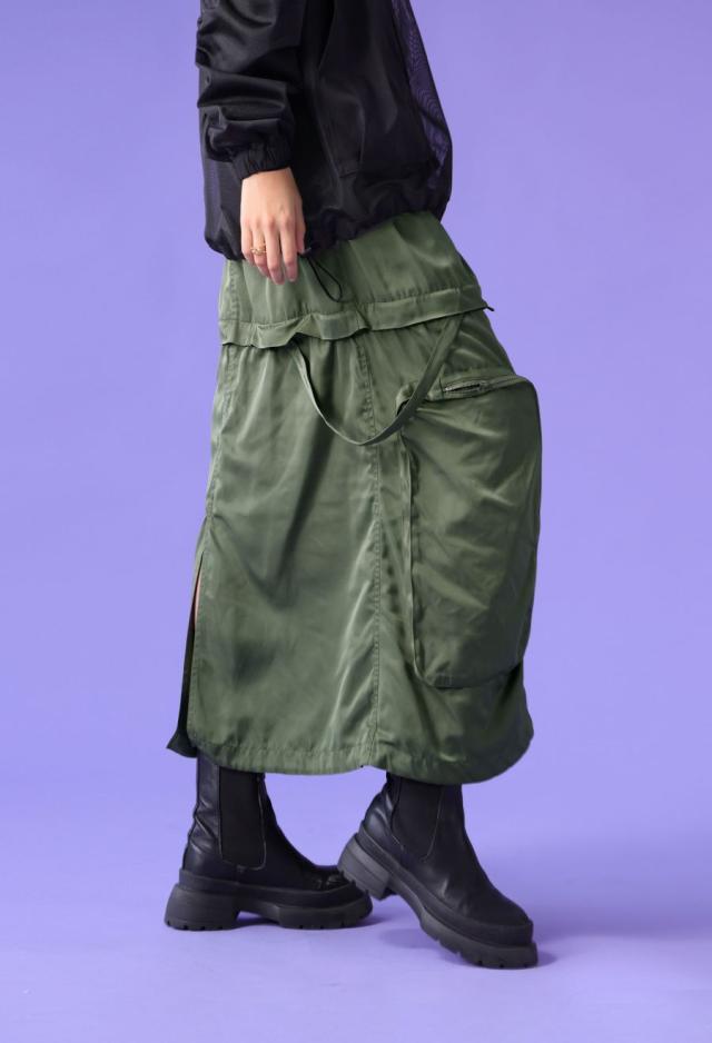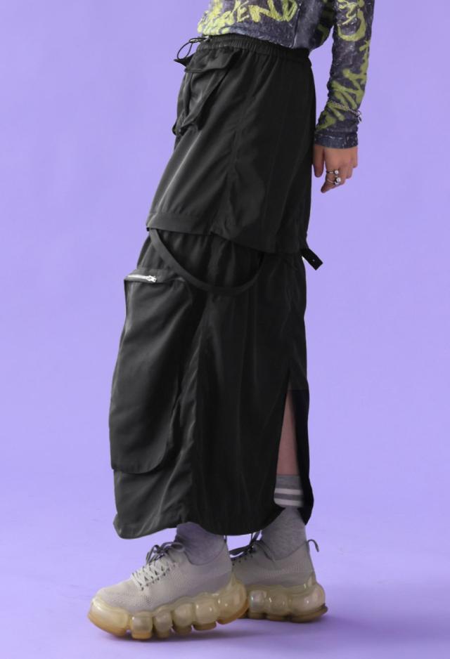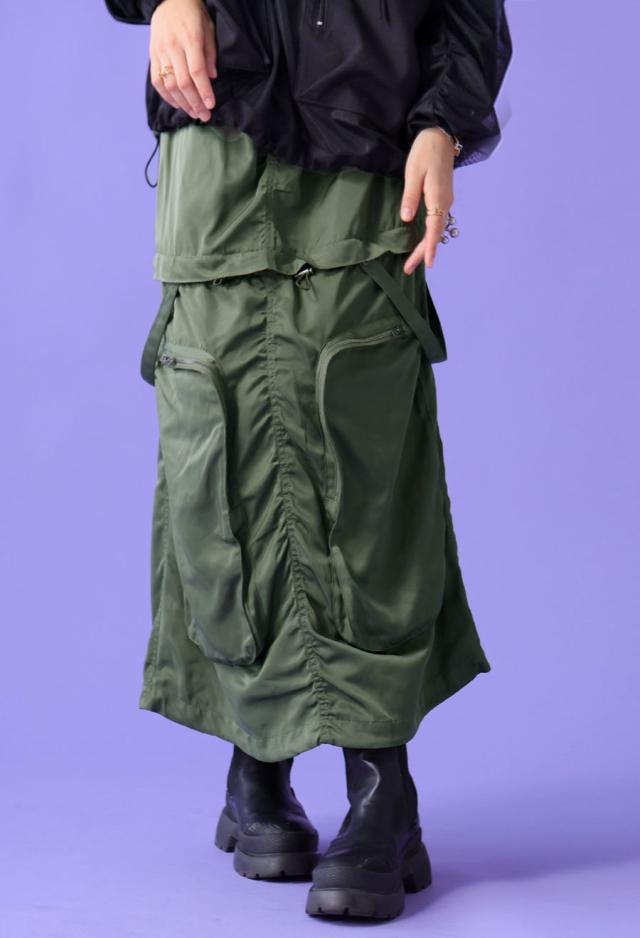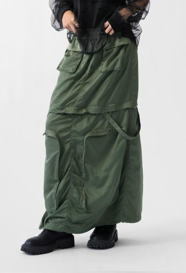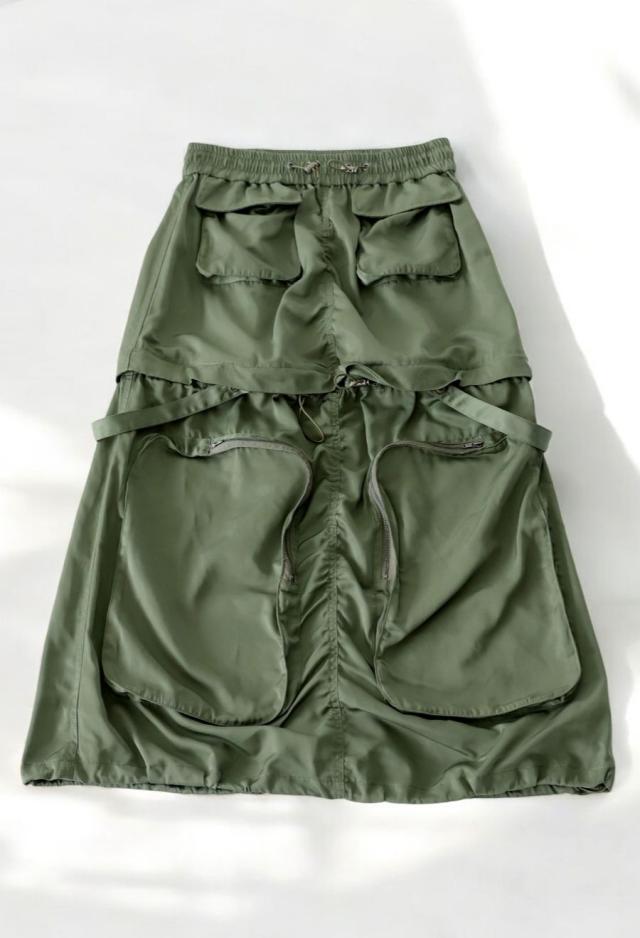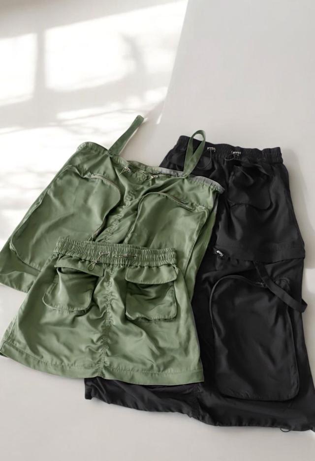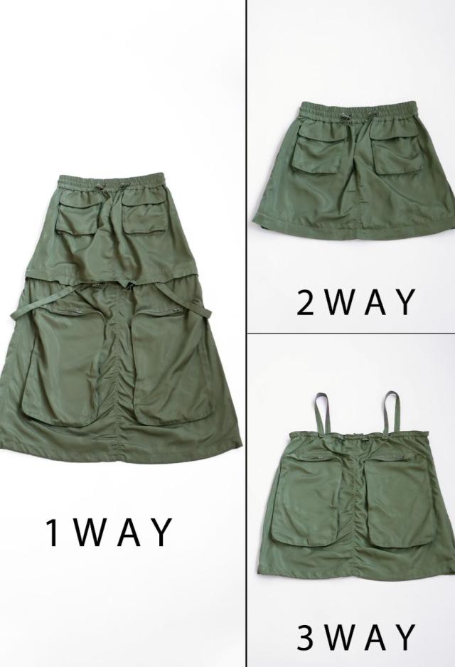 ジップで上下を分ければ、ミニスカートとキャミソール風トップスに変形可能な3WAYミリタリースカート。