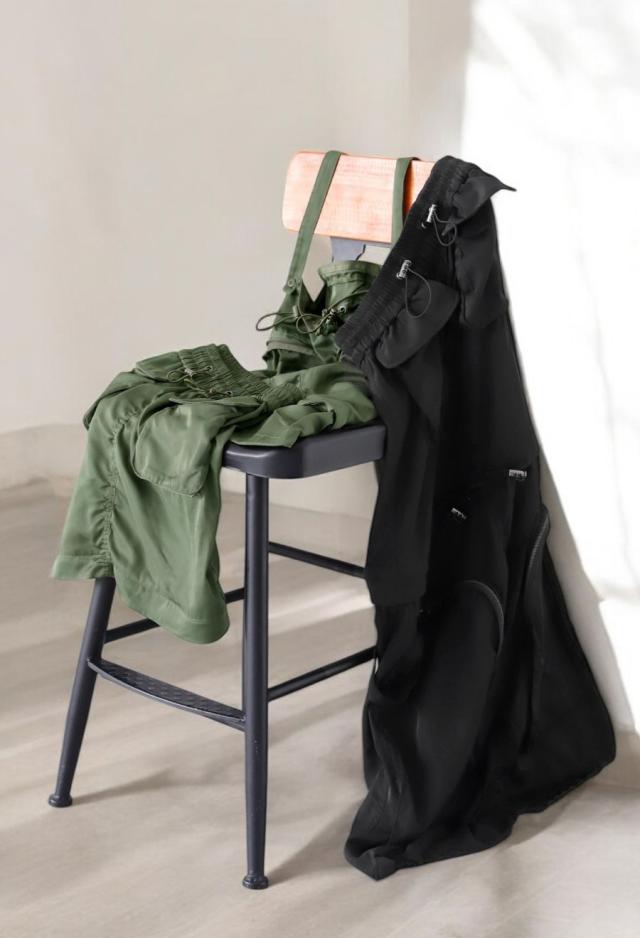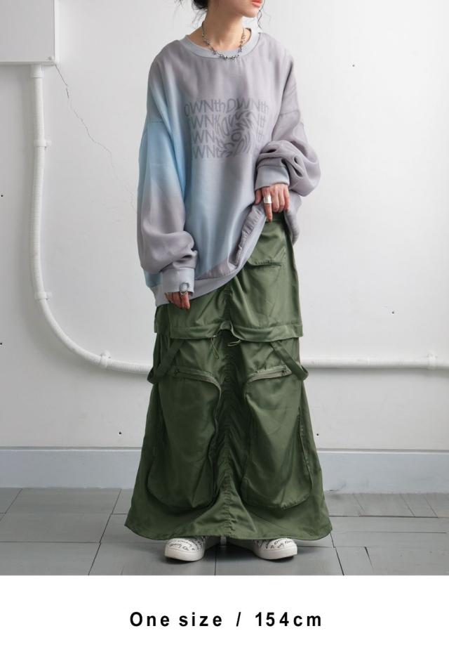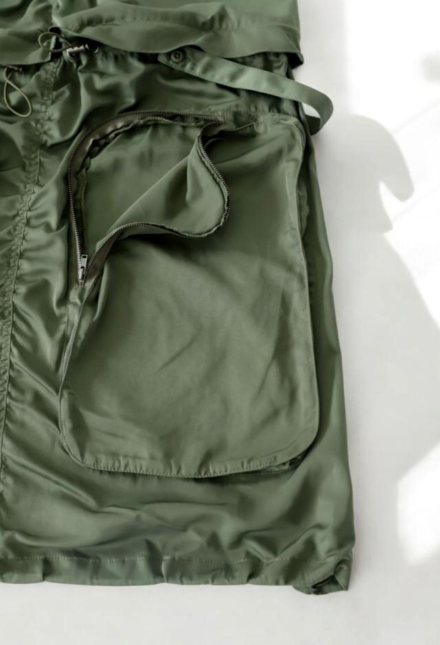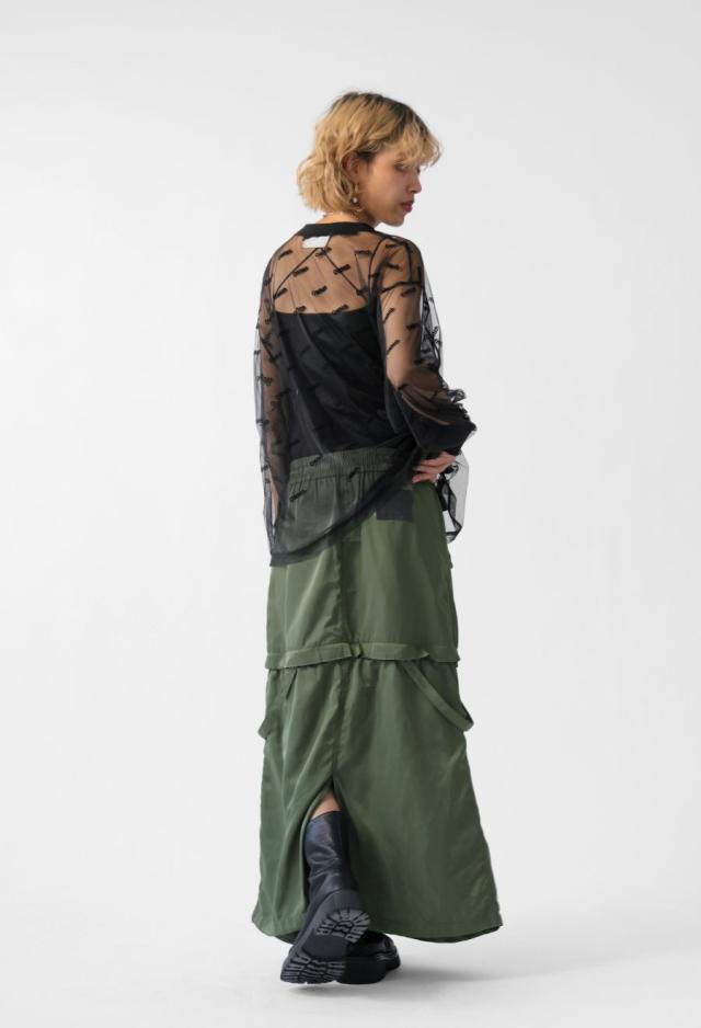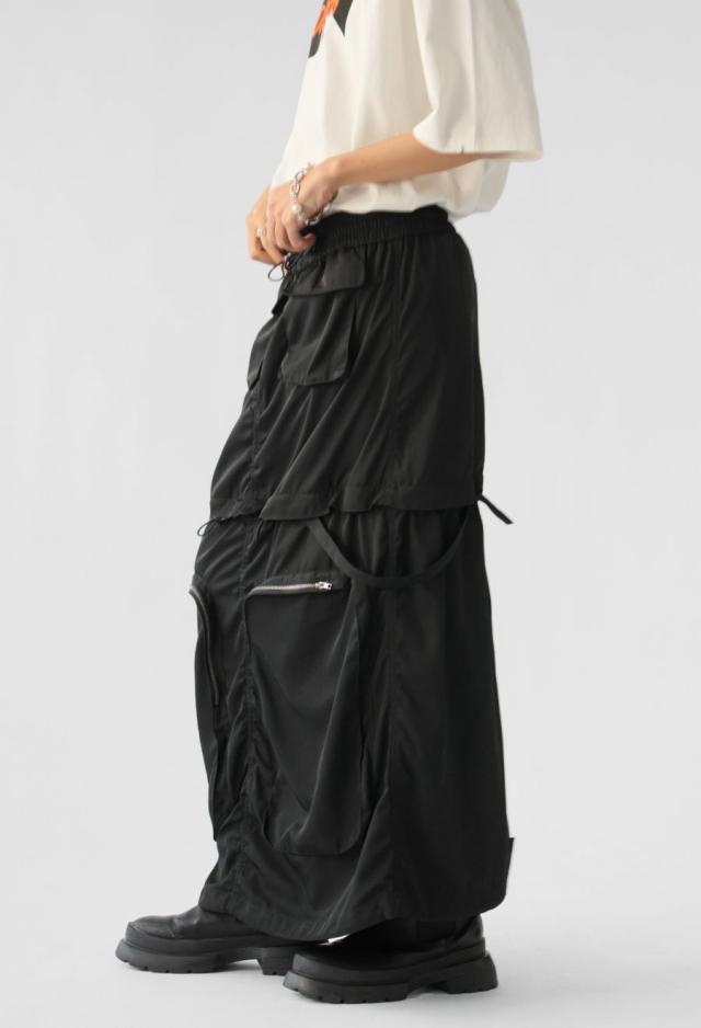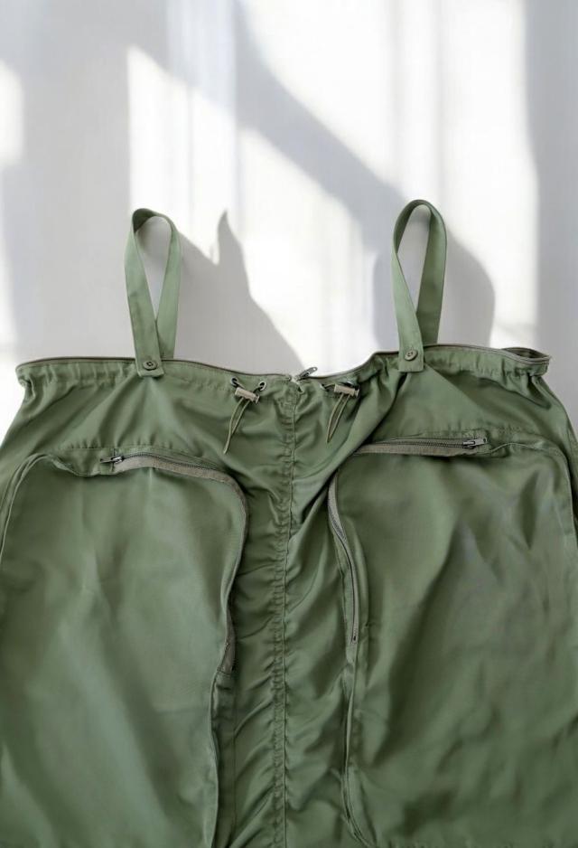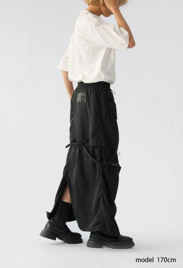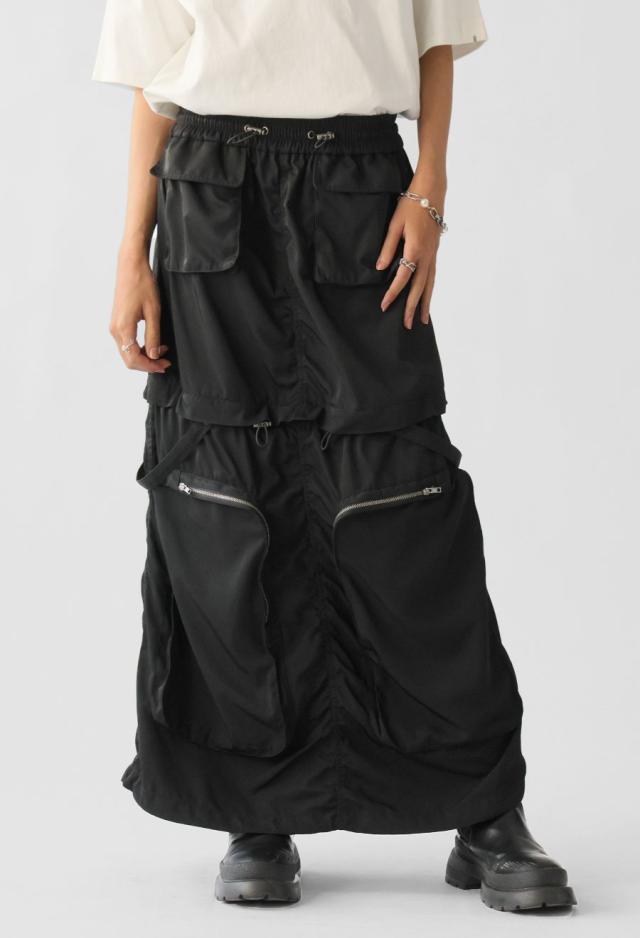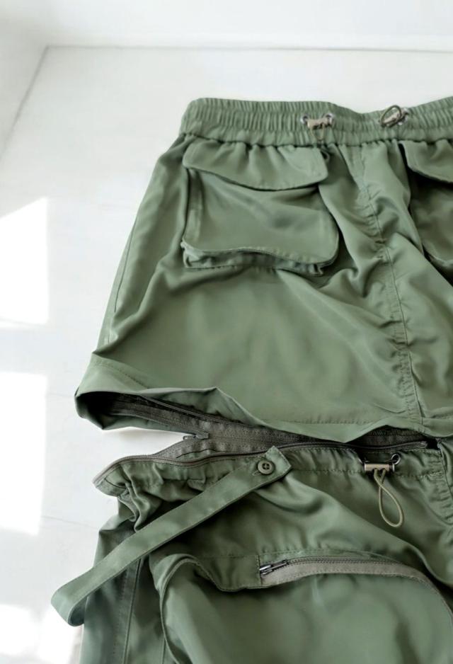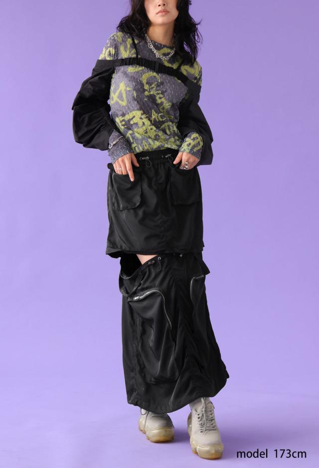ジップで上下を分ければ、ミニスカートとキャミソール風トップスに変形可能な3WAYミリタリースカート。