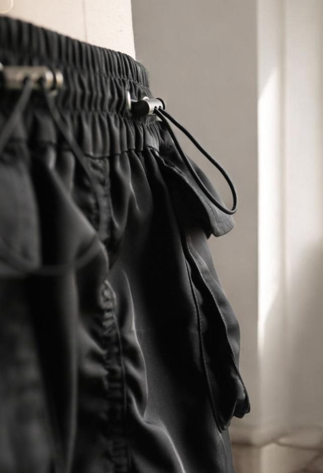 ウエストはゴムとドロスト仕様で快適な着心地。