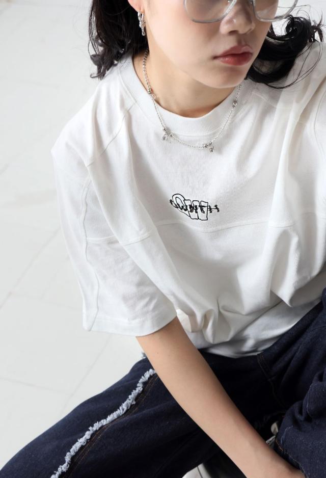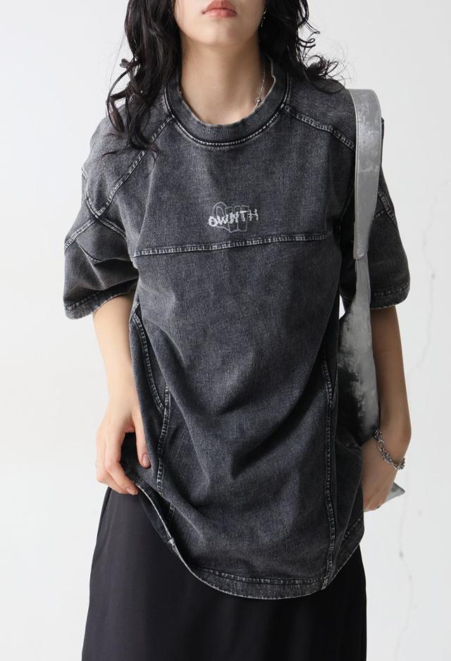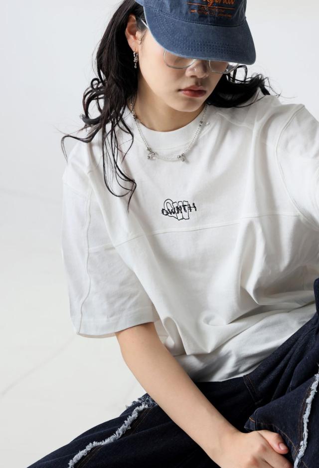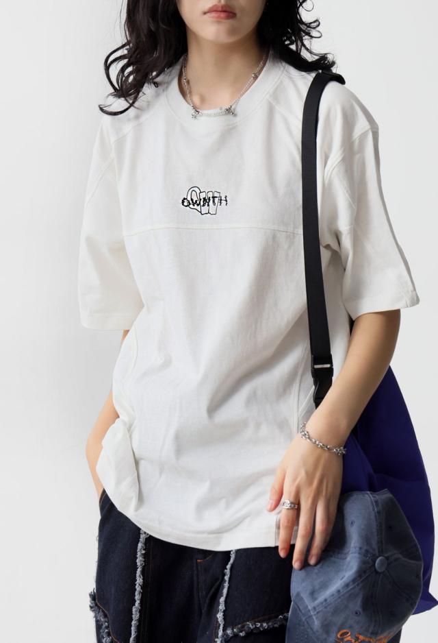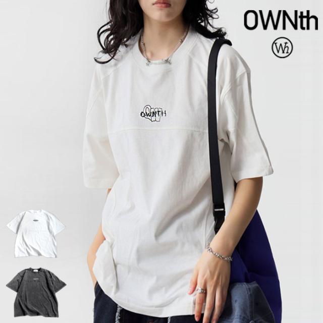 owt-0118 Tシャツ カットソー クルーネック 丸首 ロゴ 刺繍 シンプル カジュアル ユニセックス 綿100 綿 コットン リブ切替 ヴィンテージ感 シンプル ナチュラル 無地
