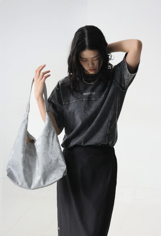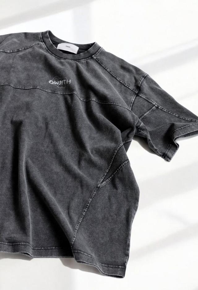 胸元のオリジナル刺繍ロゴがさりげなく映え、シンプルながらも奥行きのあるデザインに。