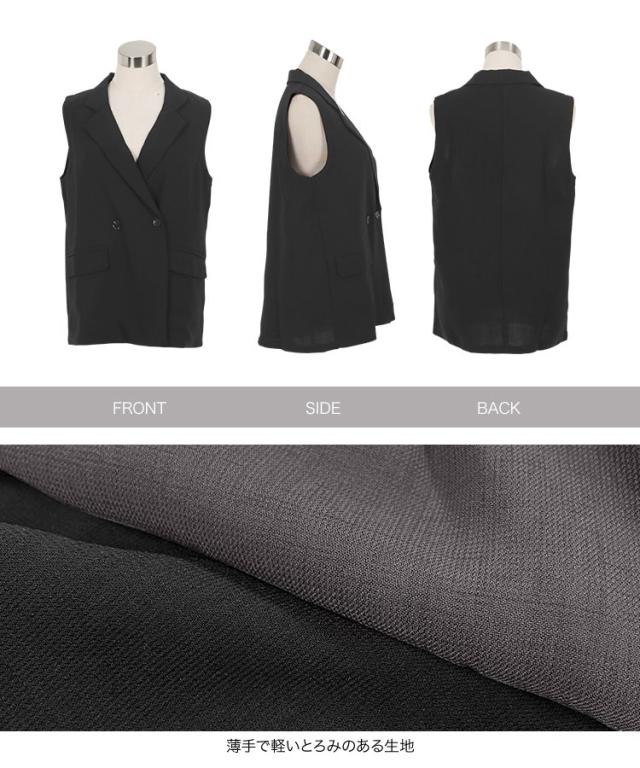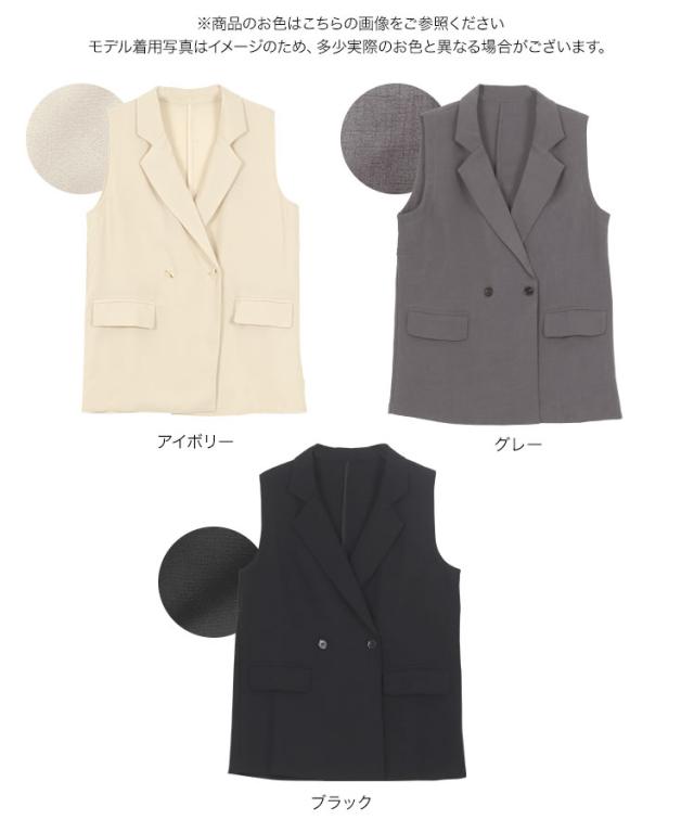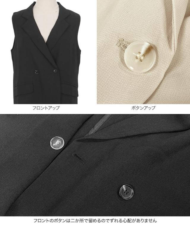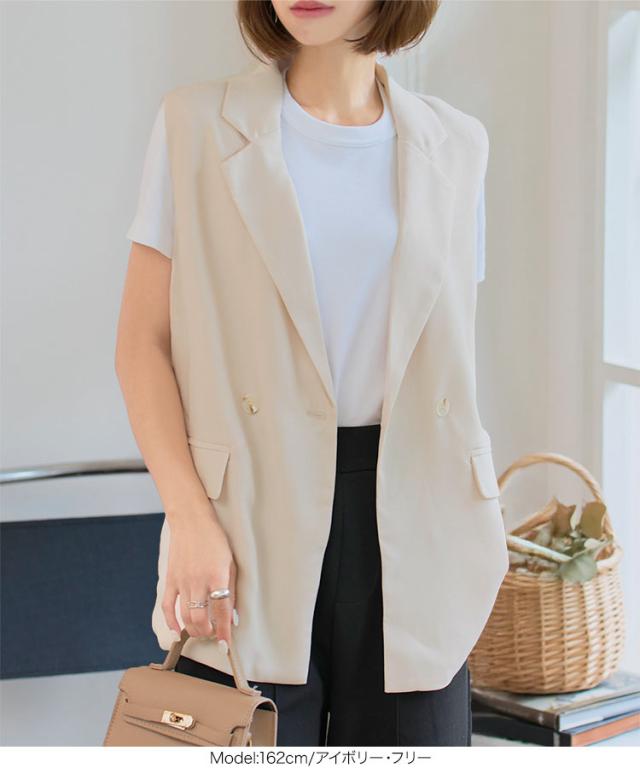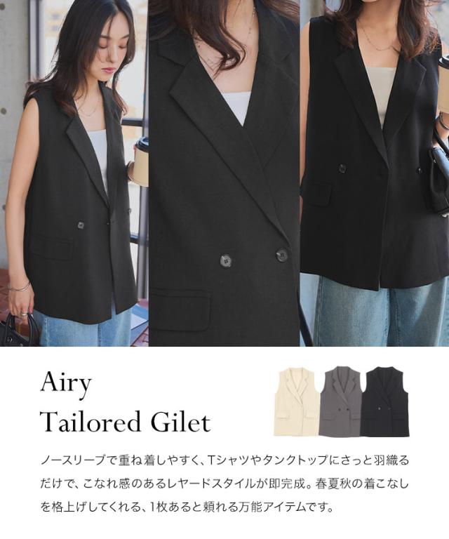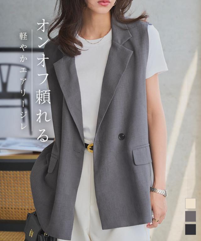 春新作 エアリーテーラードジレ C7643 入荷済 レディース ジレ テーラード ノースリーブ ジャケット 羽織り ノースリーブジャケット 襟付き ゆったり 丈長め お尻が隠れる 体型カバー レイヤード 重ね着 無地 アイボリー エクリュ グレー ブラック 白