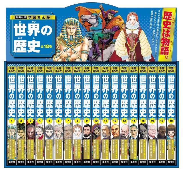 ロングセラー『集英社版 学習まんが 世界の歴史』が22年ぶりに全面リニューアル! 持ち運びに便利なソフトカバー・四六判のコンパクトサイズになりました。 集英社版学習まんが 世界の歴史は ココがすごい!! ①“まんがの集英社”がつくるから、まんががおもしろい! ②新学習指導要領に対応した初めての世界史まんが ③大人気教育YouTuber、“ムンディ先生(山崎圭一氏)”が総合アドバイザーに! ④図解やコラムが盛りだくさん ⑤受験にも役立つ近現代史が充実! ⑥大人気まんが家が描く、豪華な18の表紙 【各巻の内容】 第1巻 オリエントと地中海の文明《エジプト・メソポタミア・ギリシア》 第2巻 中国文明の始まりと中華帝国《黄河文明から唐》 第3巻 巨大帝国ローマの栄光《古代ローマ・ビザンツ》 第4巻 イスラーム世界とインド《王朝の興亡と宗教》 第5巻 キリスト教とヨーロッパの発展《中世ヨーロッパ》 第6巻 モンゴルと東アジア《宋から清前期、朝鮮》 第7巻 ルネサンスと宗教改革《近世ヨーロッパ》 第8巻 ヨーロッパの主権国家《絶対王政と啓蒙専制君主》 第9巻 産業革命とアメリカの独立《資本主義の始まり》 第10巻 フランス革命と国民国家への道《自由、人権、独立への目覚め》 第11巻 近代化の進展と帝国主義《列強と植民地の拡大》 第12巻 アヘン戦争と辛亥革命《清後期から中華民国》 第13巻 第一次世界大戦とロシア革命《総力戦から国際協調へ》 第14巻 大衆の政治参加と世界恐慌《繁栄と動揺の戦間期》 第15巻 第二次世界大戦と国際連合《人類史上最大の犠牲》 第16巻 冷戦と東西対立《ふたつの超大国と第三勢力》 第17巻 多極化する世界《アジア・ヨーロッパ・中東・アフリカ》 第18巻 進むグローバル化《21世紀の課題》 ●集英社版 学習まんが 世界の歴史 全巻セット (全18巻) 【ISBN(JAN)】9784082499327 【発売日】2024年10月04日