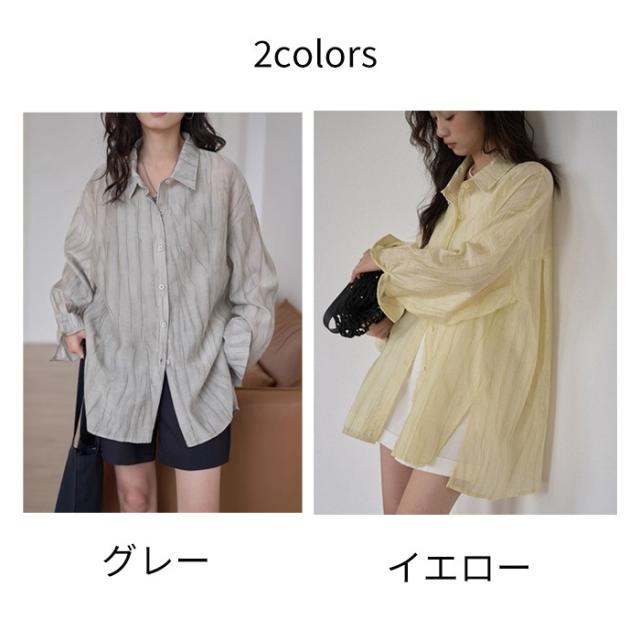 シャツ レディース 長袖 シアーシャツ グレー イエロー ゆったり 羽織り 夏 薄手 長袖シャツ サマーシャツ 透け感 トップス 大きいサイズ シアー シースルー シンプル カジュアル 羽織 体型カバー きれいめ オフィス 冷房対策 UV対策 紫外線対策 nj011d7d7x7 nj011d7
