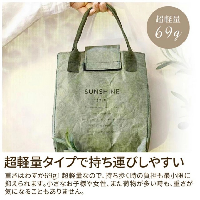 ペットボトルが立てて入る底マチの広いランチトートバッグ