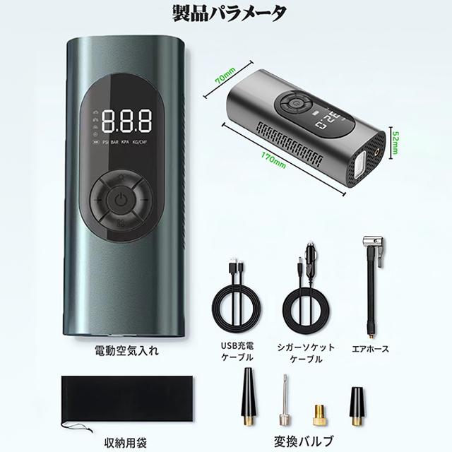 電動空気入れ 電動エアーポンプ 小型軽量 自動停止 USB充電式 自転車 仏式 英式 米式 車 電動 コードレス タイヤ 空気入れ 最大圧力150PSI スマートエアポンプ SOS/LEDライト