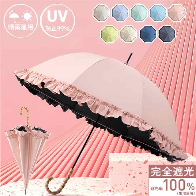 最強の日傘 長柄傘 完全遮光100% レディース傘 晴雨兼用 フリル 花柄 軽量 女性 2WAY 8本骨 紫外線対策 日焼け対策 完全UVカット100%生地ギフト対象