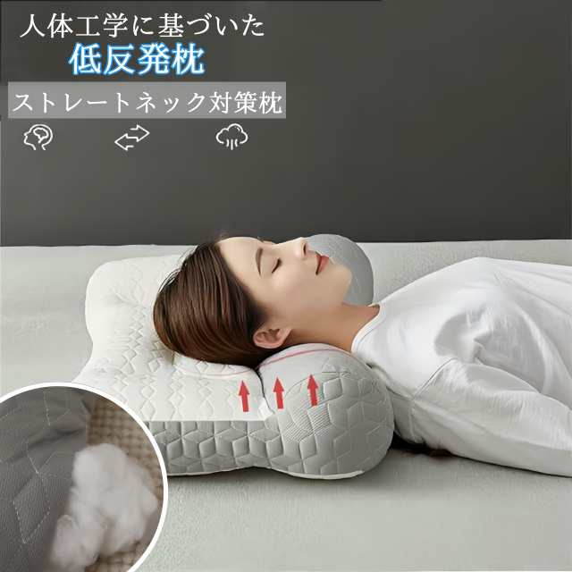 人間工学設計と圧力分散に優れた低反発により、体への負担を減少し、しっかりと頭、 首、肩をサポートしてくれます。首や頚椎を正常な形にキープして、呼吸がスムーズに出来るほか、 寝返りが軽減、いびきを軽減します。横向き・仰向け・うつ伏せ、どんな寝姿勢でもOK!