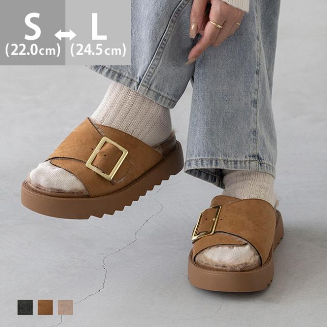 サンダル レディース ラウンドトゥ ラウンド スライドサンダル つっかけ スリッパサンダル すりっぱ 脱ぎやすい 履きやすい 靴下合わせ 厚底 バックル ベルト ファー ボリュームソール ごつめ 重ため ラウンドヒール すべりにくい 痛くない 歩きやすい 疲れない 疲れにくい 大きいサイズ 小さいサイズ 幅広 カジュアル旅行 トラベル 帰省 旅行 あったか 雪 雪の日 防寒 デート おでかけ お出かけ カフェ ショッピング 買い物 お散歩 ワンマイル 散歩 屋外 外履き デイリー 日常 普段使い 日常使い 普通履き 4.5cmヒール 4.5センチヒール ミドルヒール 3E 黒 ブラック 茶 ブラウン キャメル 肌色 ベージュ S 22cm 22.5cm M 23cm 23.5cm L 24cm 24.5cm 秋 冬 スエード調 合皮 outletshoes アウトレットシューズ welleg ウェレッグ