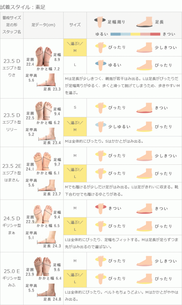 ※足の形には個人差があります。スタッフ試着感想は参考程度にお考え下さい。