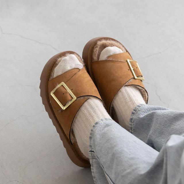 ふわふわファーが見た目も履き心地もあたたかく、寒い日も快適に。