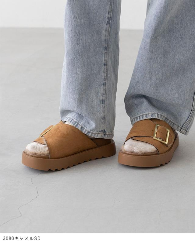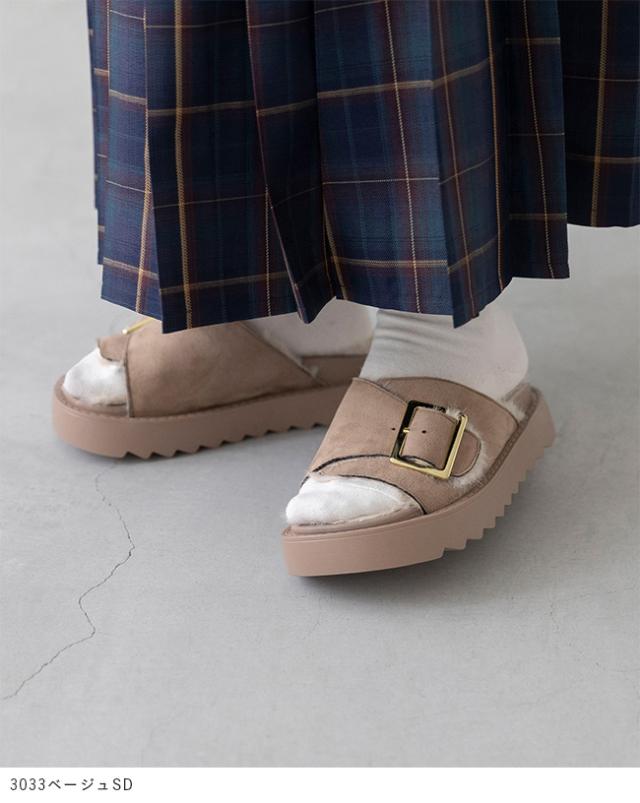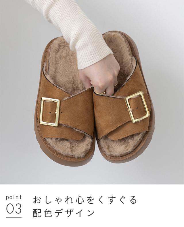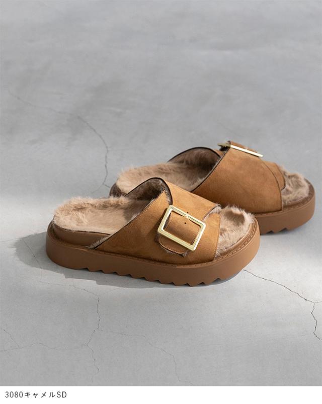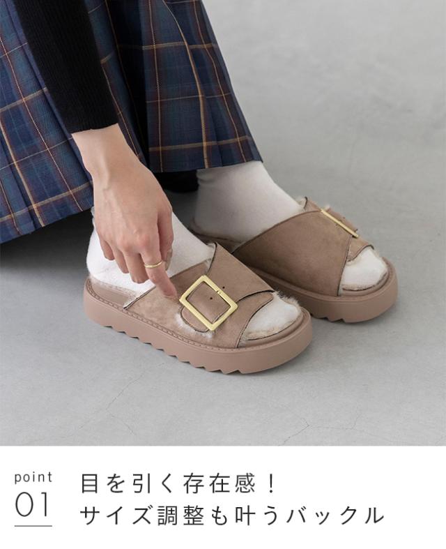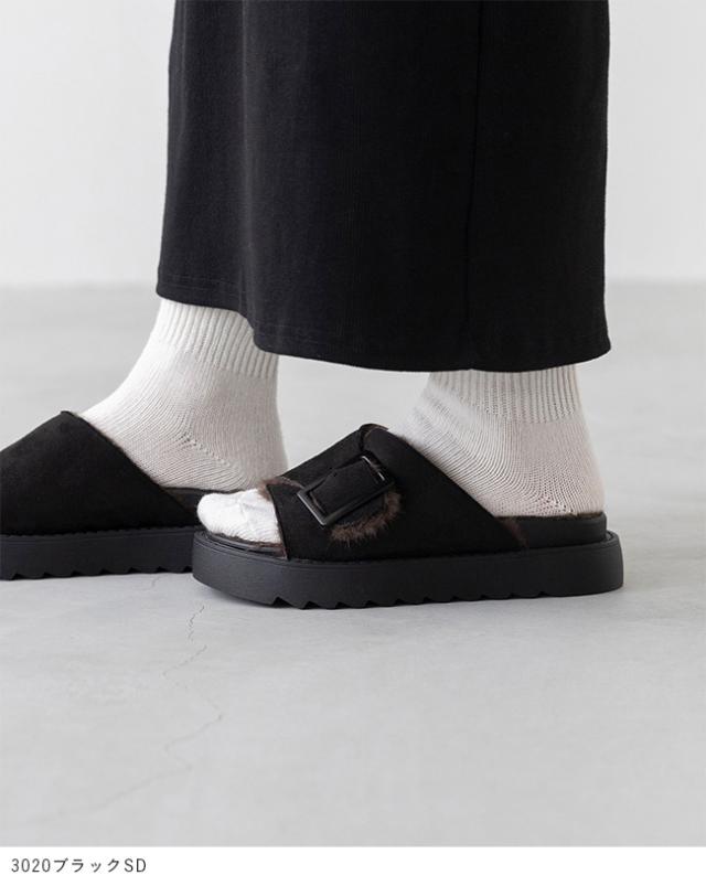 サンダル レディース 厚底 スライドサンダル ファーサンダル つっかけ 痛くない 歩きやすい バックル ベルト ムートン 送料無料