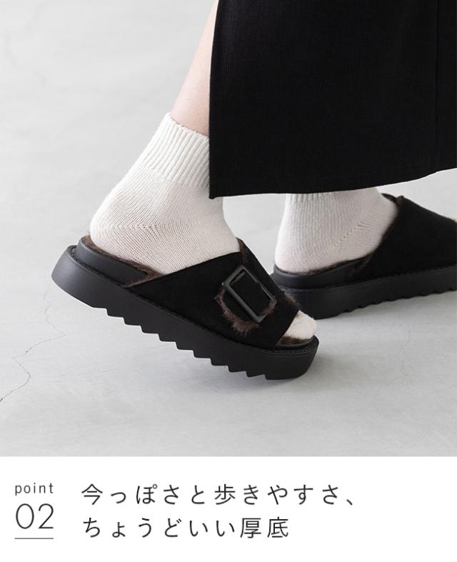 ・靴下合わせでの長時間の着用時や素材の性質により、ファーの毛が靴下に付くことがございます。あらかじめご了承ください。