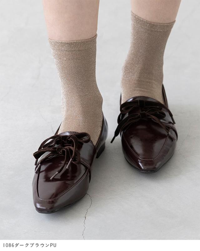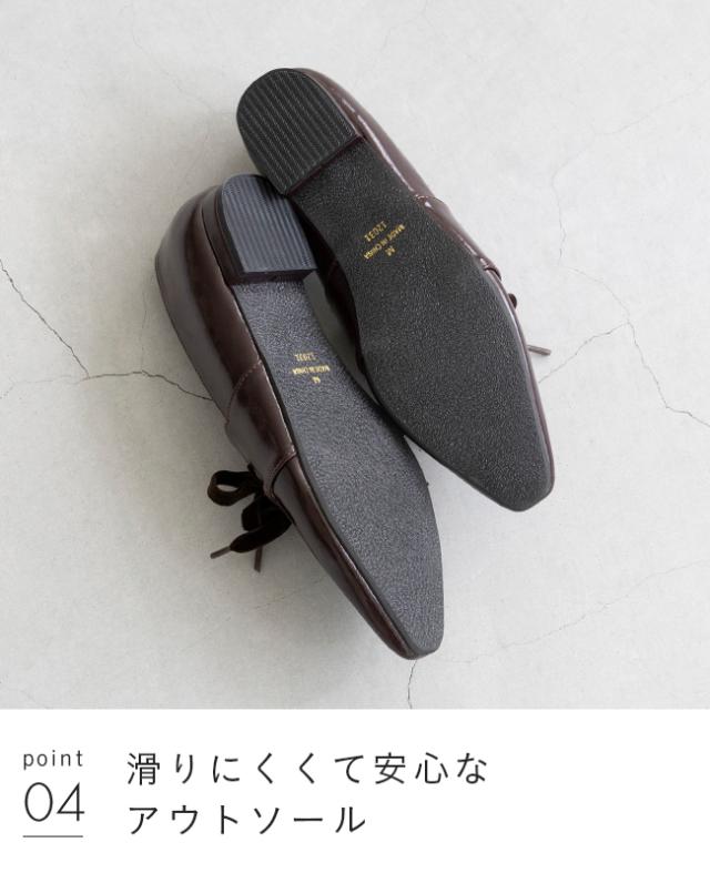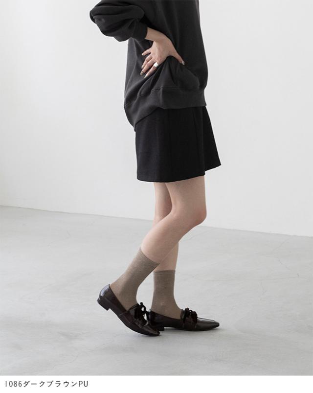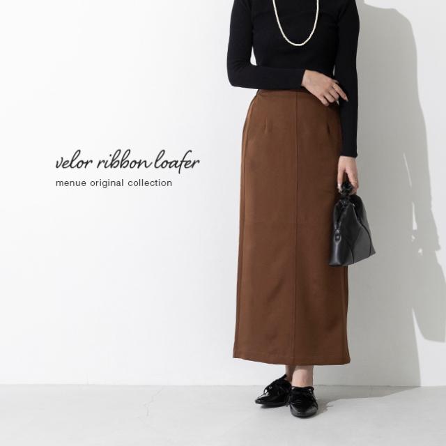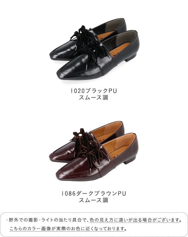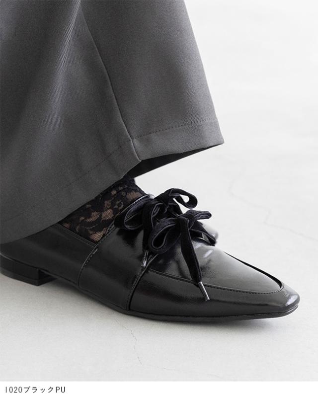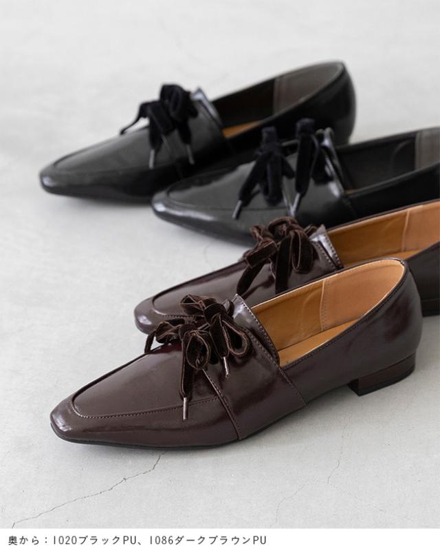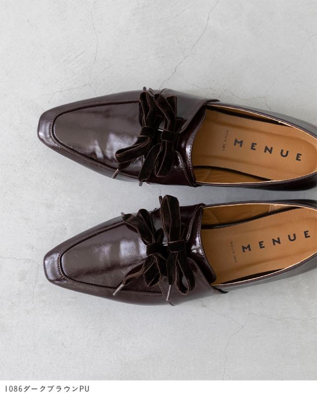 スッと伸びたトゥとベロアリボンが印象深い秋冬コーデにしてくれる、ベロアリボンスクエアトゥローファー