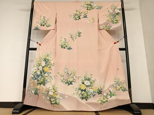 平和屋着物●訪問着 友禅 作家物 草花文 金彩 正絹 逸品 AAAY6486zg