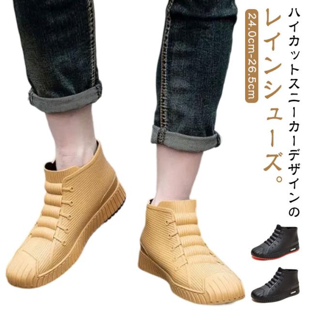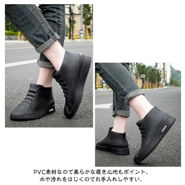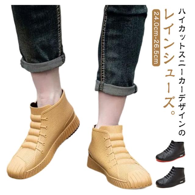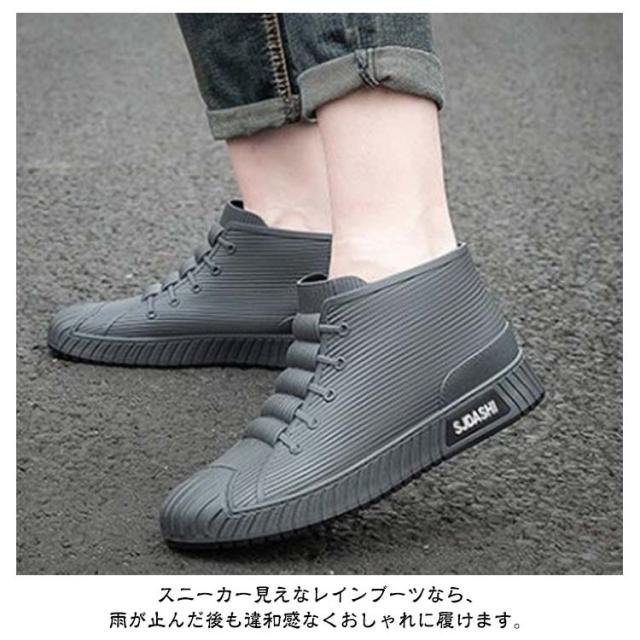 メンズ レインスニーカー スニーカー ハイカット 雨靴 レースアップ アウトドア レインシューズ 長靴 歩きやすい 防水 軽量 防水ブーツ レインブーツ 滑らない 履きやすい 防滑 通学 通勤 大きいサイズ 男性 レインシューズ 釣り 花見 夏 雨 雪 農作業 雨靴