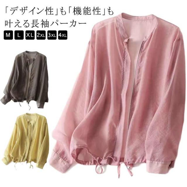 UVパーカー コーデ おしゃれ 長袖 ライトアウター 薄手 体型カバー レディース 紫外線対策 きれいめ 春 アウター 涼しい 羽織 ノーカラー UVパーカー 日焼け止め 軽量 UVカット 日よけ対策 ゆったり 体型カバー UVケア 紫外線カット 大きいサイズ 無地 シンプル