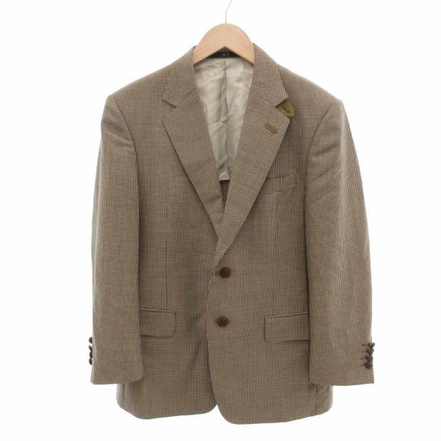 【中古】ダックス DAKS テーラードジャケット チェック柄 シングル ウール モヘア混 2B 背抜き AB5 ブラウン