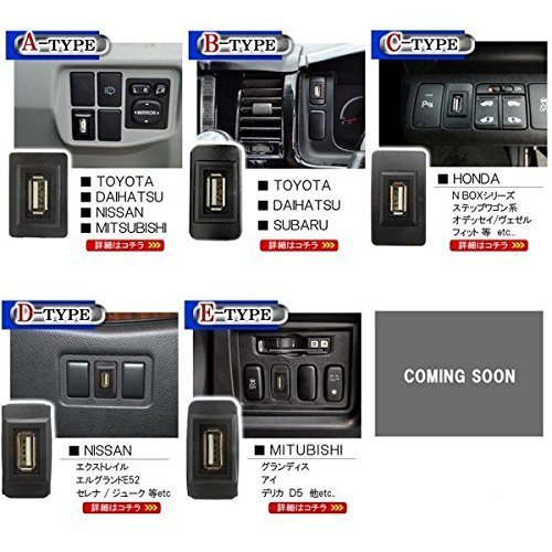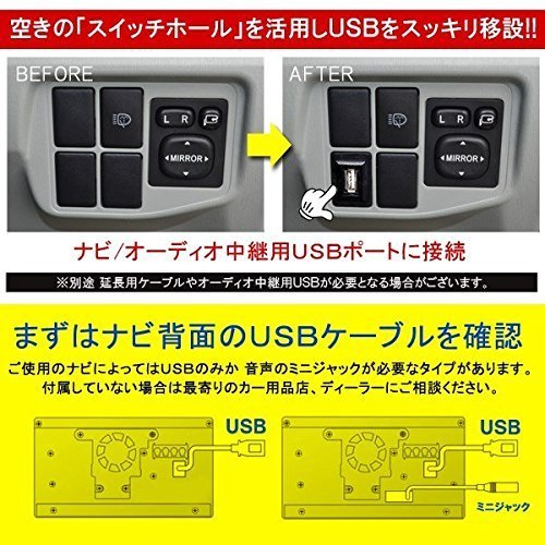 トヨタ ダイハツ スバル 対応 スイッチホール USBポート ナビ オーディオ 接続通信 パネル USB電源 Bタイプ ハイエース200系 アルファード10系 エスティマ30系 タント ハイゼットカーゴ などに 代替品 互換品