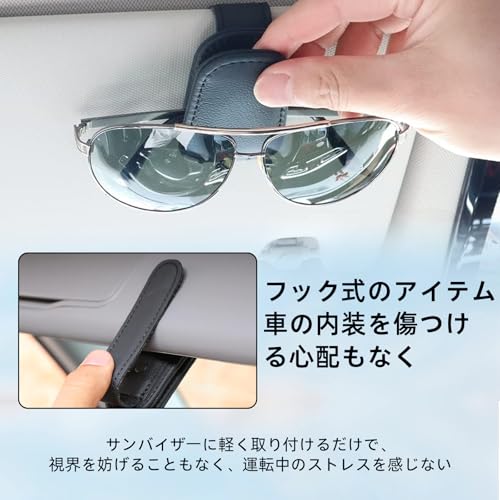 多用途で使いやすい: サングラスだけでなく、カードやチケットなどの小物も一緒に保管できます。また、使いやすい位置に取り付けることで、運転中も安全にアクセス可能です。