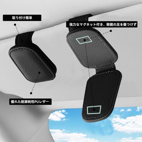 サングラスホルダー 車用 グラスホルダー サンバイザー 車 眼鏡ホルダー サングラス ホルダー メガネホルダー サンバイザーポケット メガネを傷つけず PUレザー 取り付け簡単 ブラック