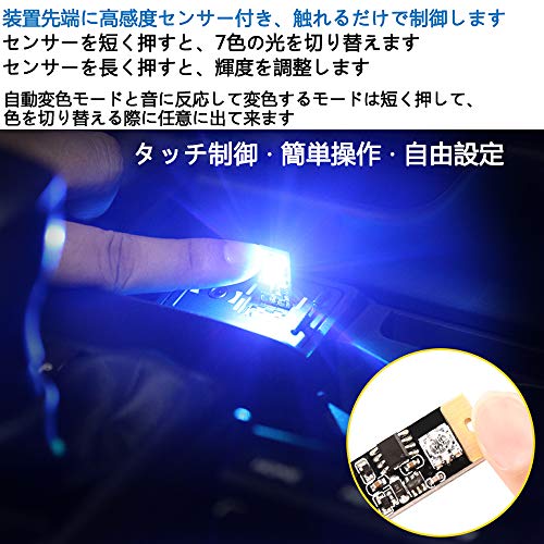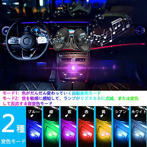 USBナイトライト 車内デコレーションライト 7色調色 無段階調光 音に反応 自動変色モード タッチ制御 高輝度照明 設定不要 工事不要 USB給電