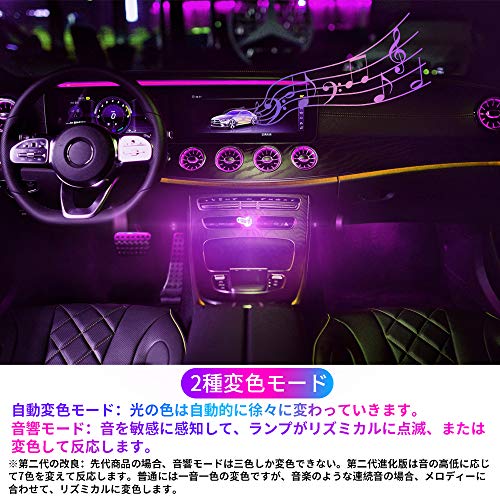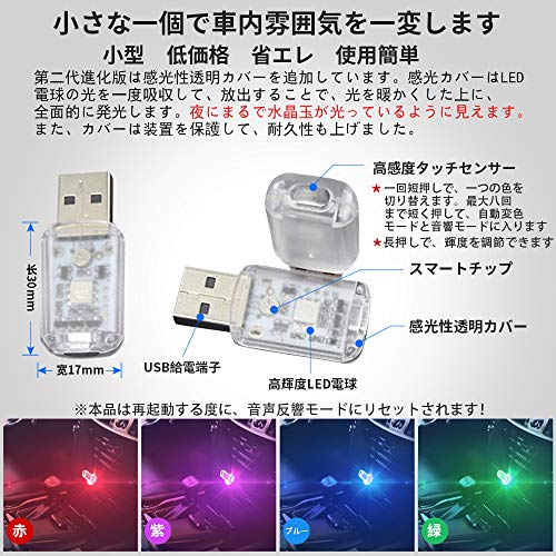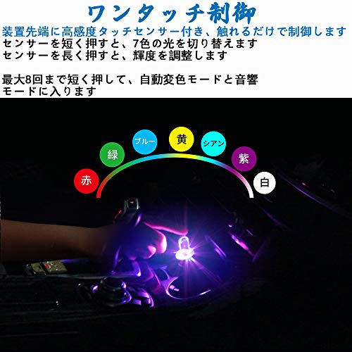 USB 雰囲気ライト 車内 デコレーションライト 7色調色 無段階調光 音に反応 自動変色モード 全面発光 タッチ制御 暖光色 高輝度照明 設定不要 工事不要 USB給電