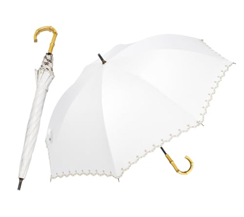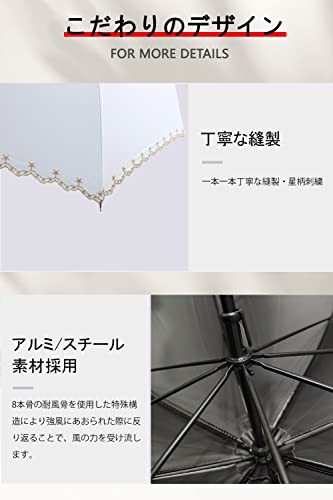 【可愛くオシャレ・上品なデザイン・軽量日傘】長傘は気分が上がる配色・ホワイト、フラワー、刺繍など落ち着きのある色味で飽きのこないベーシックなデザイン、どんなシチュエーションやスタイルにも合わせやすい。まるくかわいいシルエットが魅力で、女性らしいエレガントな雰囲気を醸し出します。スリム型のショット傘なので、収納しやすく携帯便利です。誕生日、母の日、アウトドア、通勤、通学、贈り物、撮影会、結婚式、旅行、結婚記念日、就職祝い、暑中見舞い、還暦祝い、寿祝いなどのプレゼントとして最適。