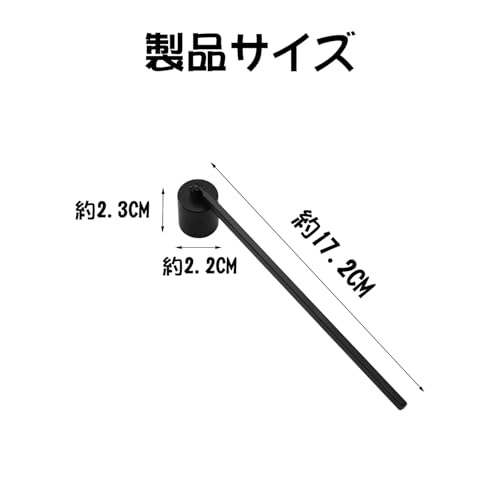 詳細な包装内容:1 個入りの火消しアロマキャンドルが提供されます。色は黒で、高級感を演出します。サイズ約17.2x2.3x2.2cmと、コンパクトで持ち運びやすいサイズです。仏壇用蝋燭消しとしてのパッケージ内容が充実しています。
