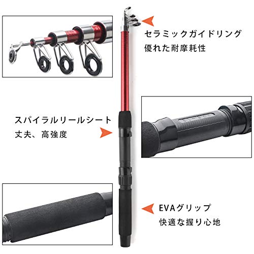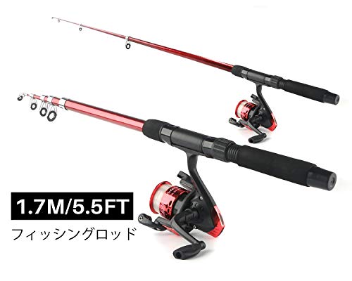 釣り竿セット 初心者 ロッド スピニングリール ルアーセット 伸縮式釣竿コンビセット コンパクトロッド 入門セット 収納バッグ付き 携帯便利 軽量 1.7m