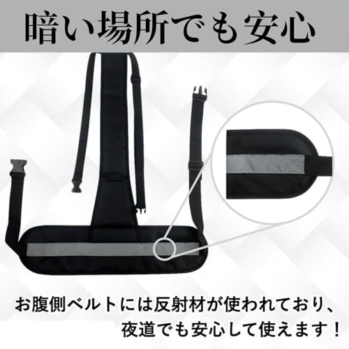 【暗い場所でも安心】お腹パッドの前側には反射材が使われており、夜道でも安心して使用できます。