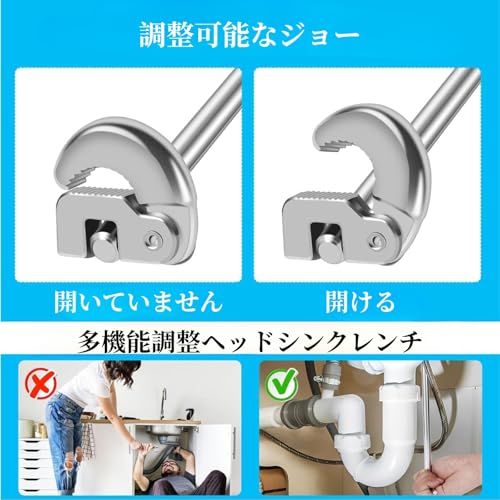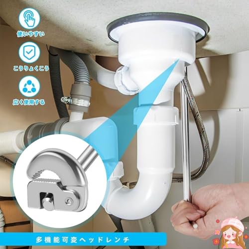 (多機能レンチで狭い場所も簡単作業)この多機能レンチは、狭い場所での作業をサポートするための設計が施されており、ラチェット機能付きで作業効率がアップします。シャワーヘッドの取り付けや蛇口交換など、細かい作業にも対応でき、家庭でもプロ仕様のツールとして活用できます。