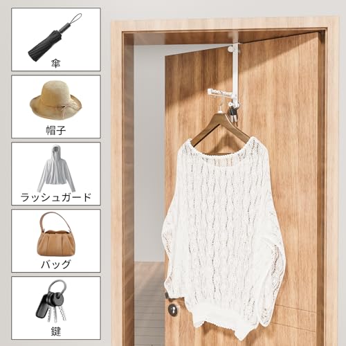 ・オフィス…あらゆる場所のドア/折り戸に設置可能! 一時的な荷物掛けや、雨で濡れた上着の仮干しに大活躍 玄関設置で衣類ケアも簡単 下駄箱のドアに取り付ければ、外出着をサッと吊るしてハンガーケア可能! ホコリ