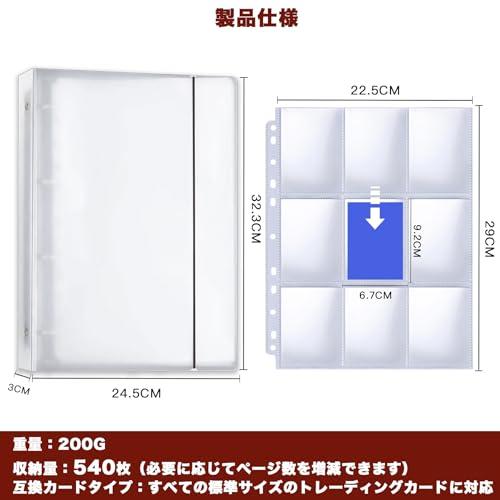 トレカ ファイル カードページ(約)22.5x29CM、単一グリッドサイズ(約)7x9CM、30ページの合計540ポケット(1ページあたり18ポケット)素材:PP 大容量-両面収納 両面収納デザインを採用。