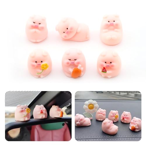 車 飾り 可愛い ブタ 置物 車内 装飾 カーアクセサリー 豚 ミニ動物 樹脂 小さなオーナメント かわいいピギー 飾り デスクトップの装飾 DIY装飾品 絶妙な贈り物 6個セット